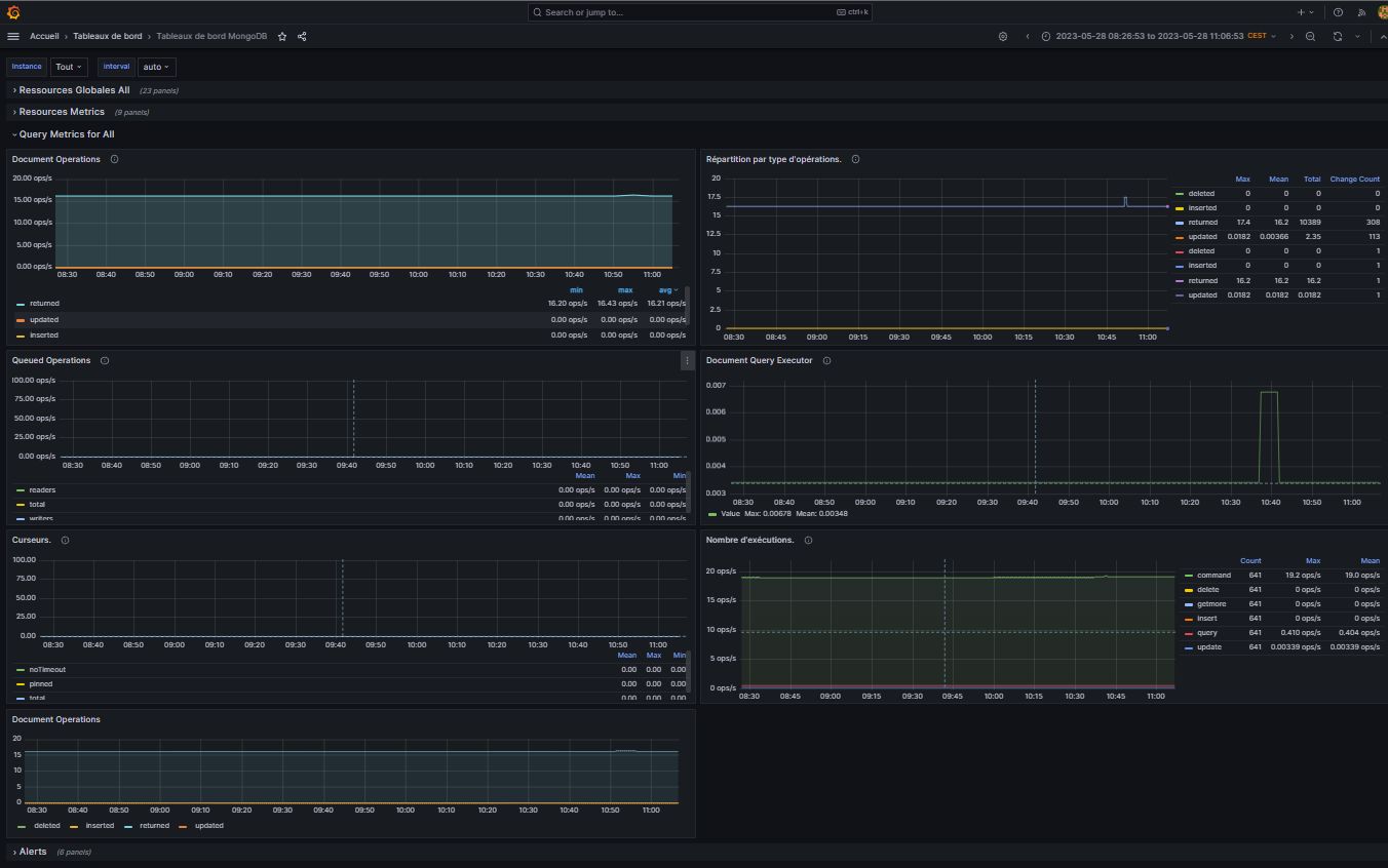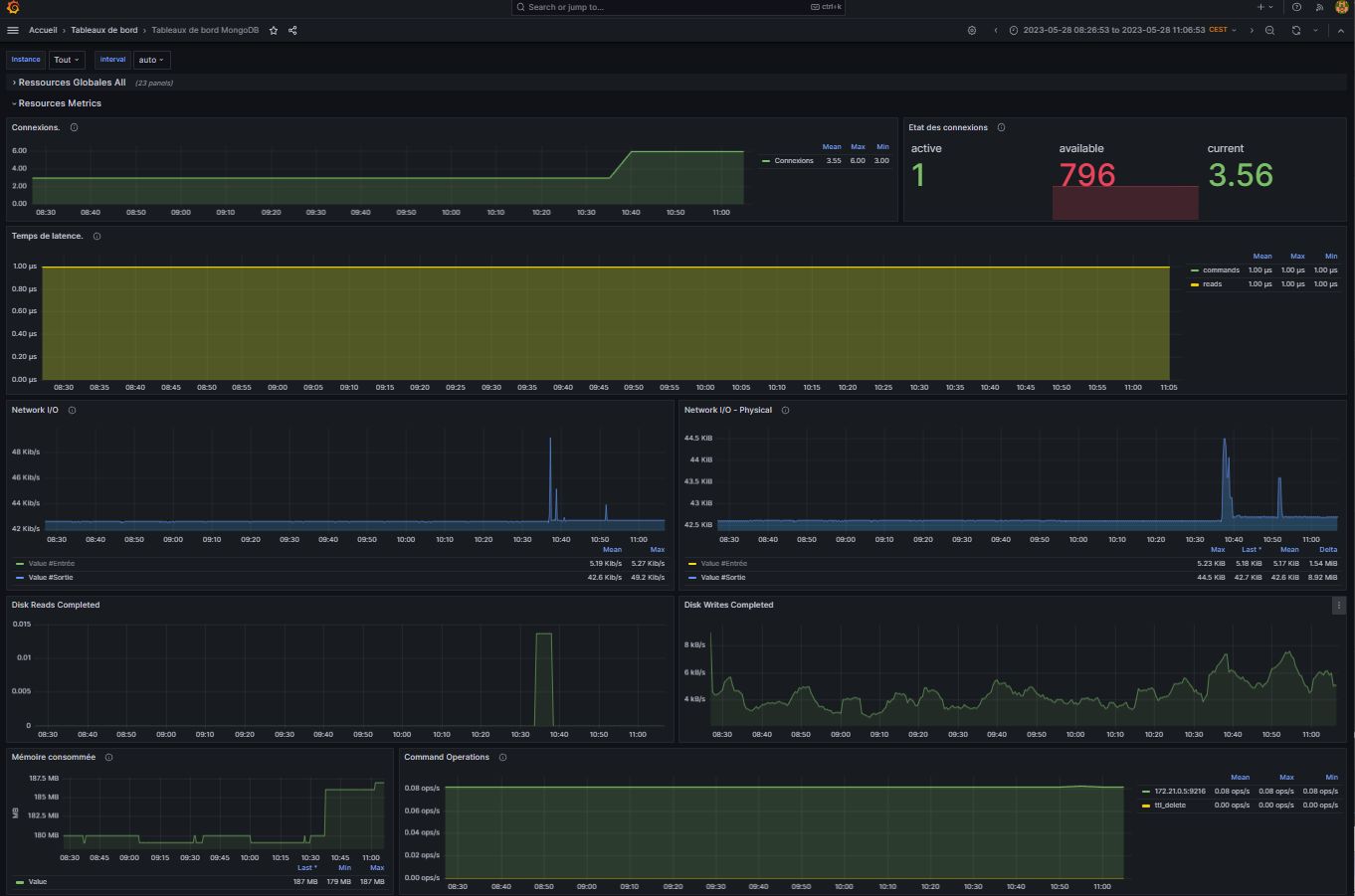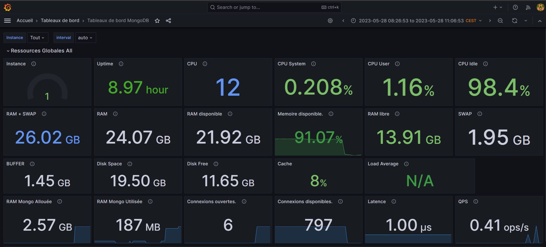 - Authentification désactivée pour les tests avec mongod_exporter ;