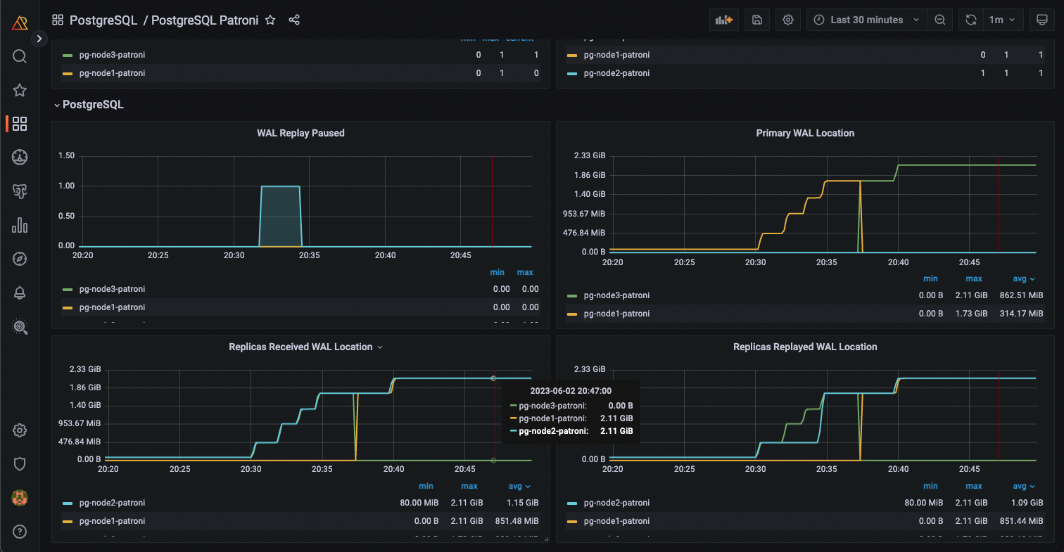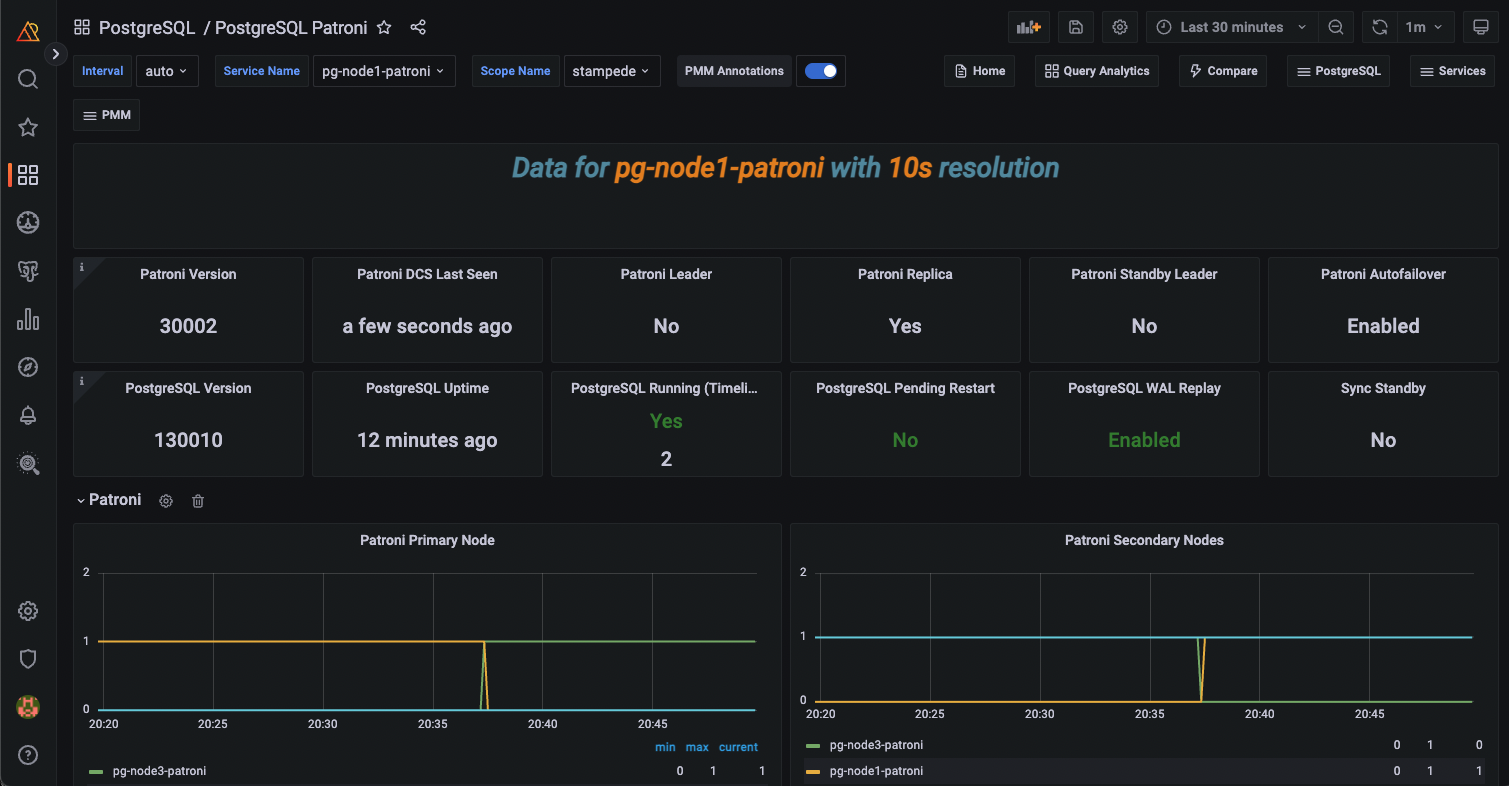 Patroni dashboard for use with Percona Monitoring and Management version 2.