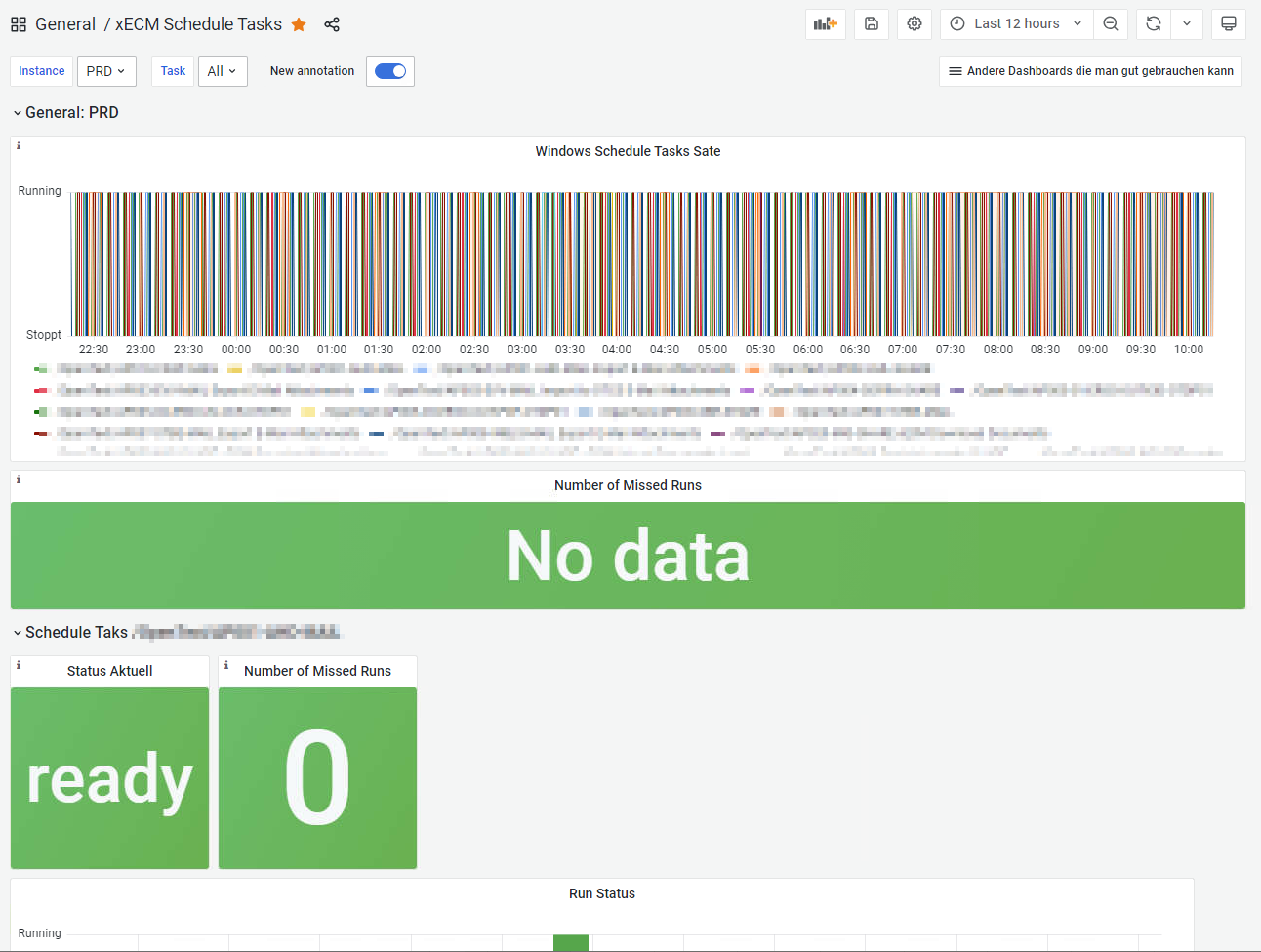 The Windows Server Schedule Jobs dashboard uses the prometheus data source to create a Grafana dashboard with the stat and timeseries panels.