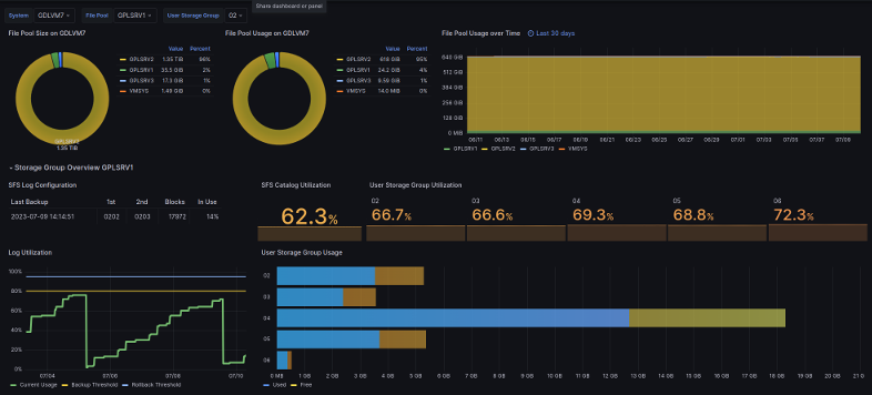As the SFS usage data is not in the monitor data, you need to add an additional section to the Data Pump configuration file to enable the data collection. The filepool parameter specifies the file pools to monitor. Refer to the Performance Toolkit documentation for advanced parameters.
