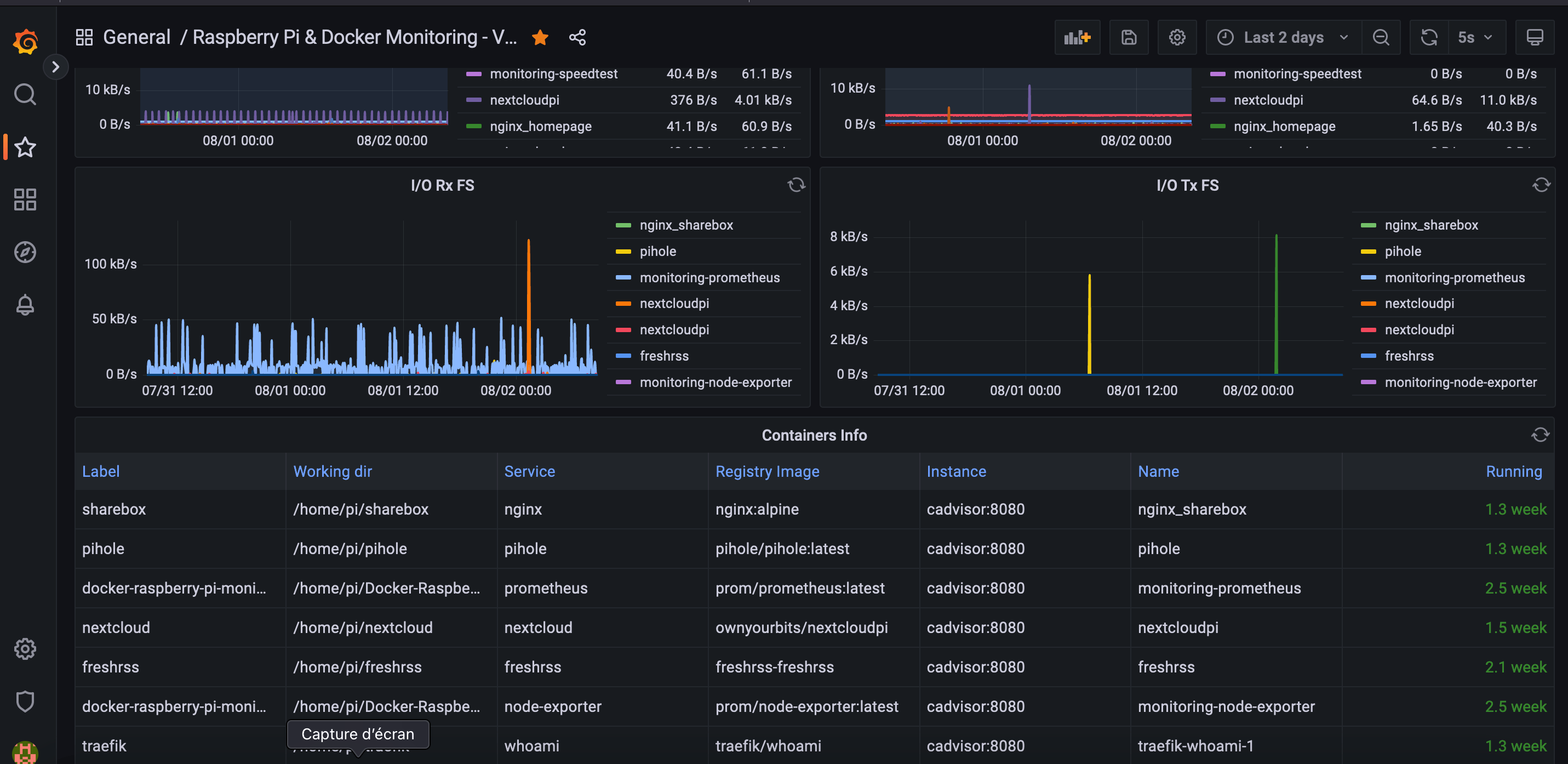 This dashboard show informations about Raspberry Pi System and Docker containers.
