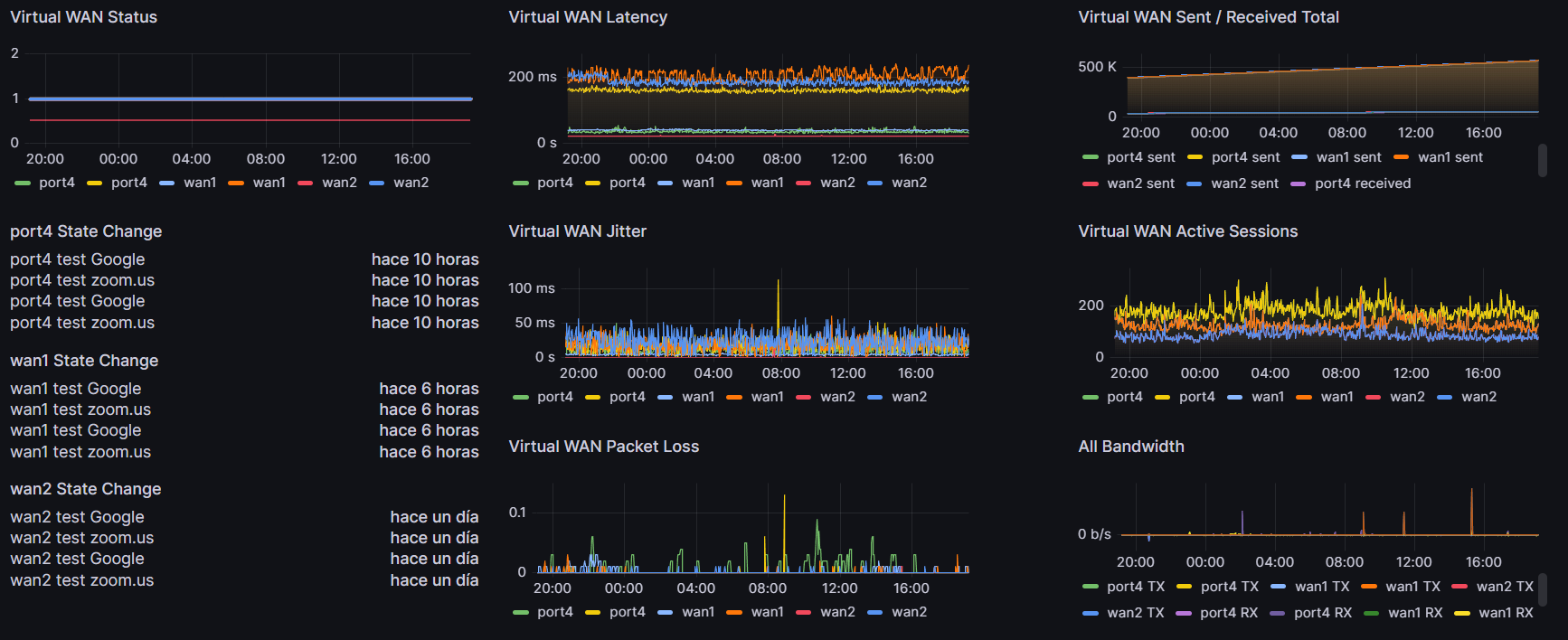 | SD WAN | Statics about SD-WAN like links latency, jitter, packet loss, state changes, status, bandwidth, etc |