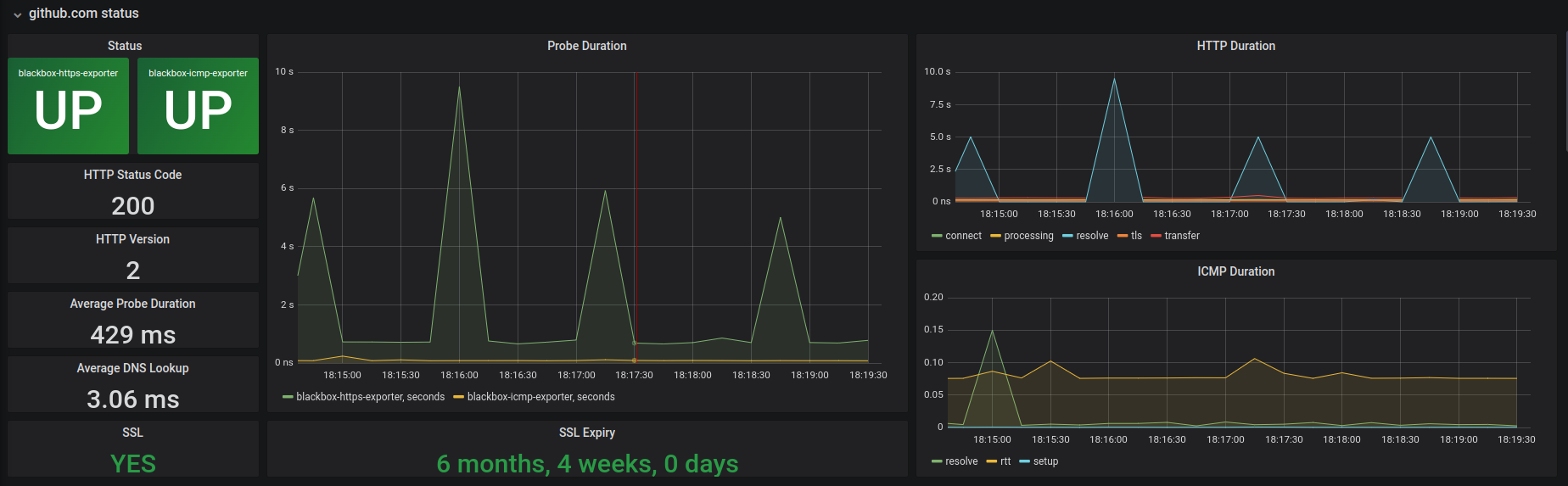 Blackbox Exporter dashboard details about each type of endpoint (DNS, HTTP, ICMP)
