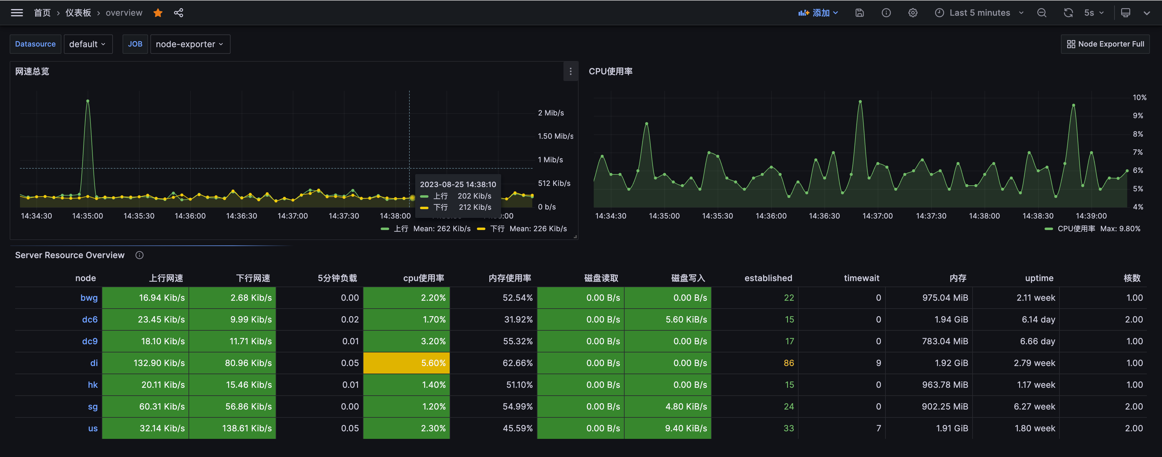 集群所有节点主机概览信息
