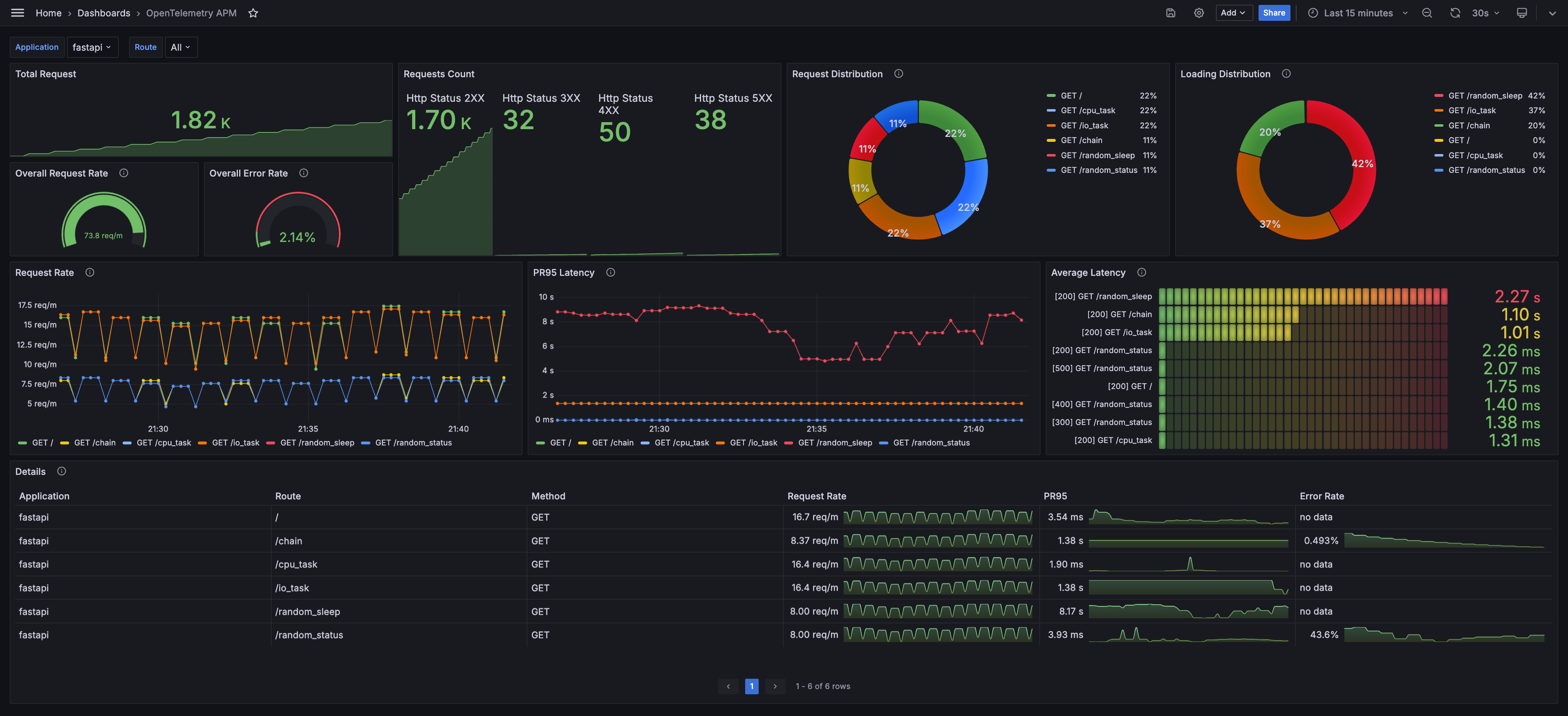 A language-agnostic application performance management(APM) with OpenTelemetry, Grafana, and Prometheus.