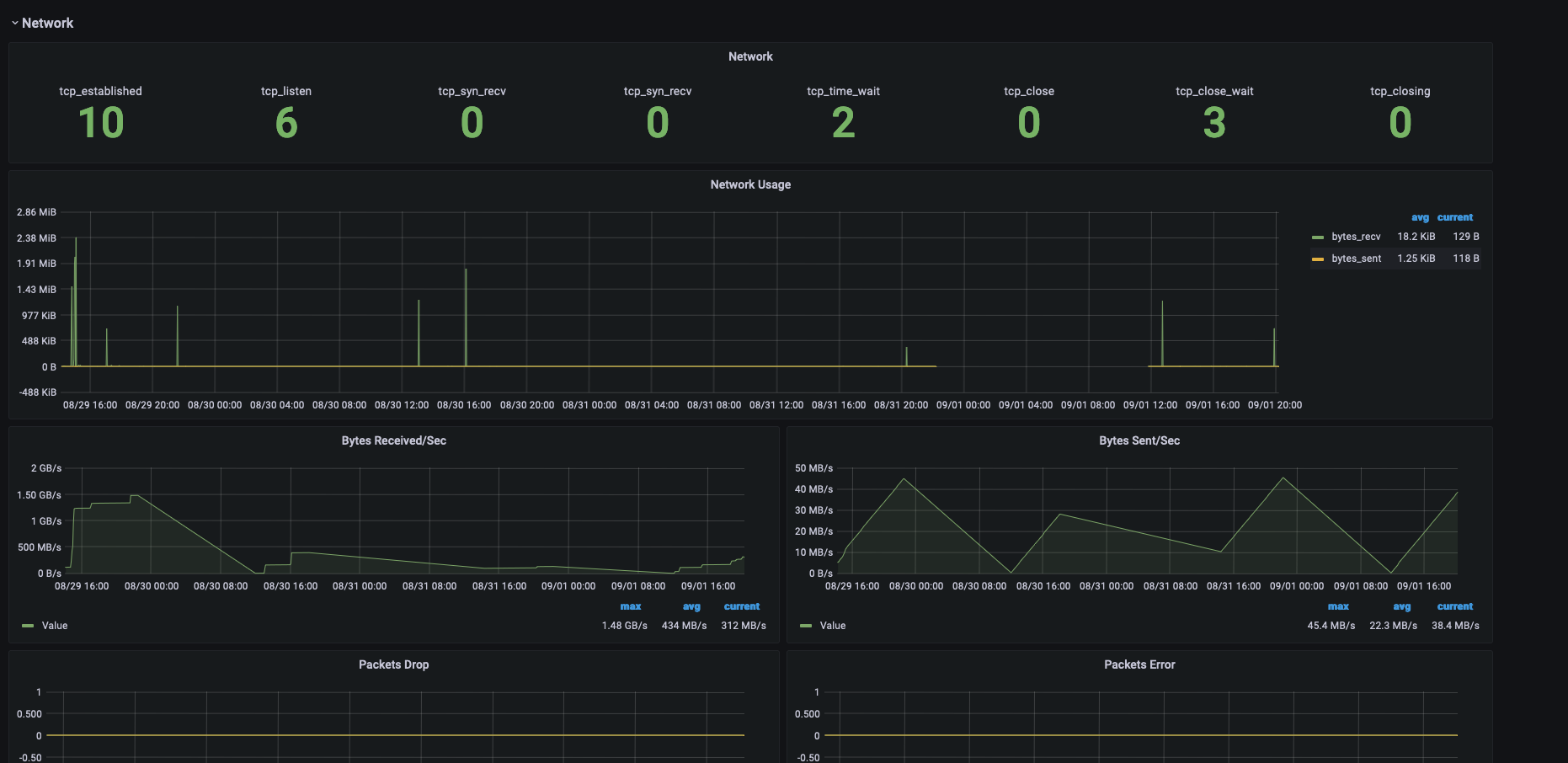 Quantidade de pacotes perdidos e com erros ( Packets Drop e Packets Error).