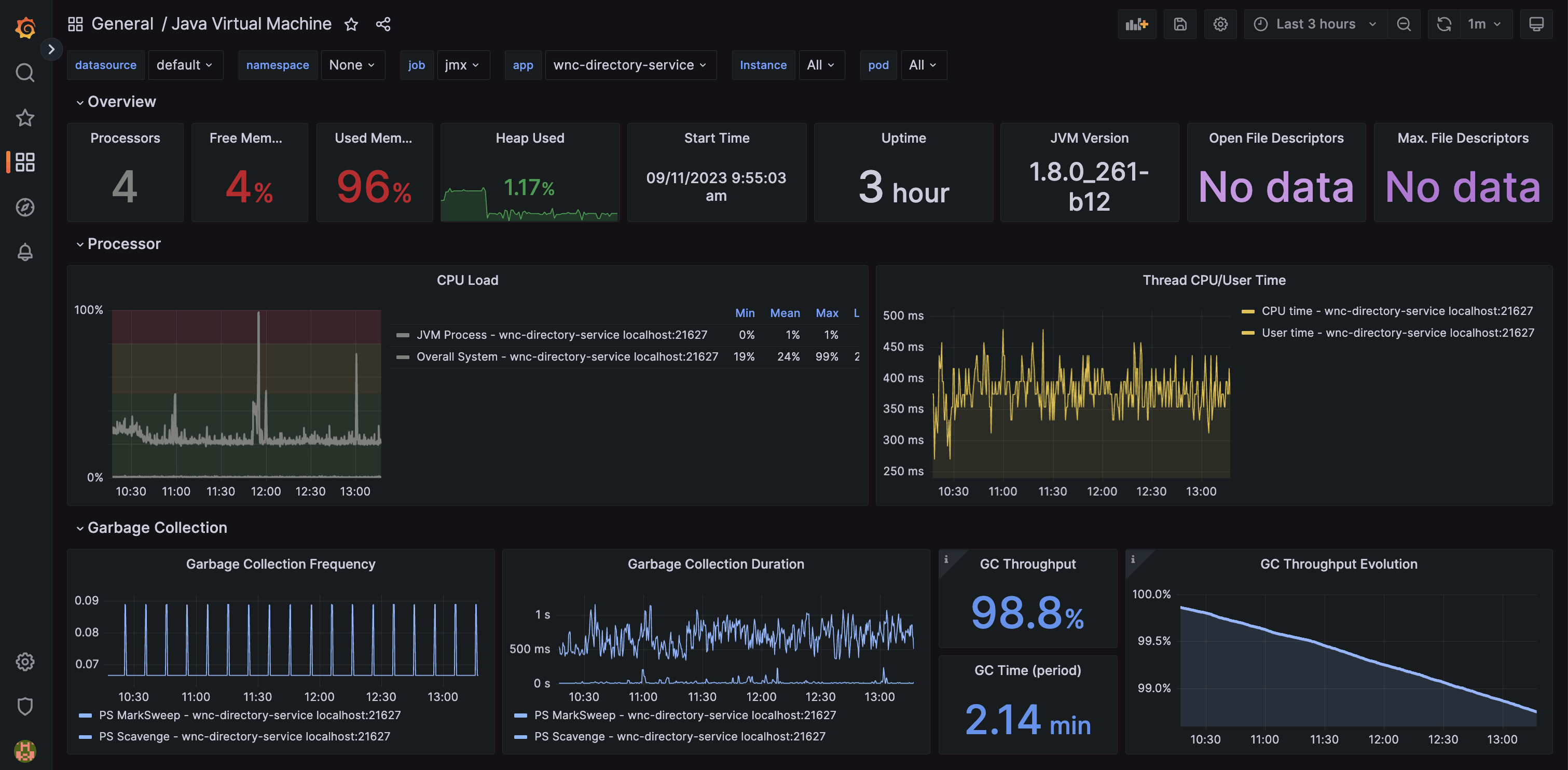 help: Java Virtual Machine processor load for $1