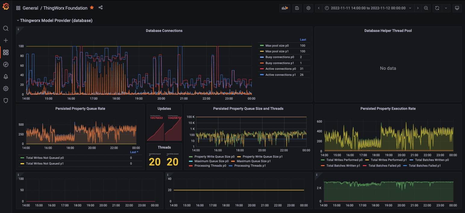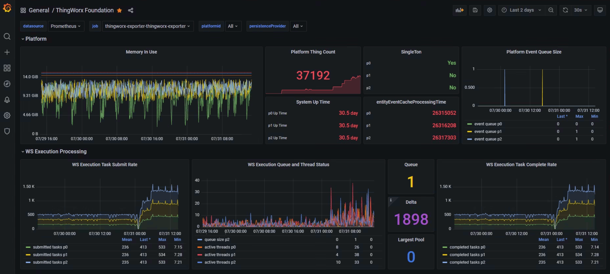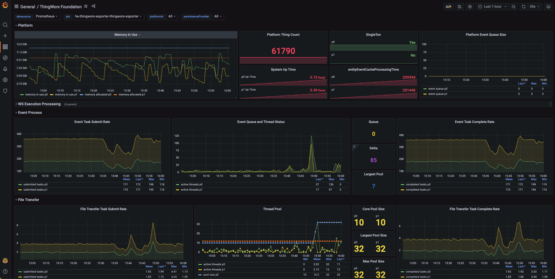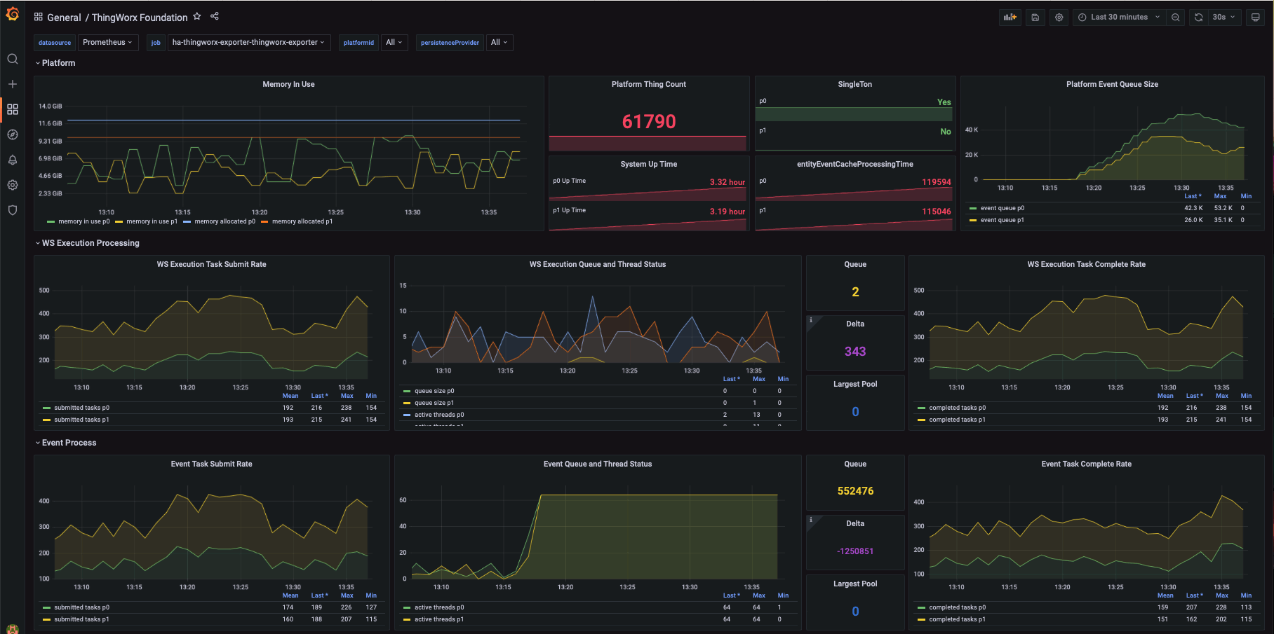 ThingWorx Foundation detailed analysis dashboard version 3.0 Please consult [ThingWorx Health and Performance Monitoring - Overview Guide](https://drive.google.com/file/d/1WCXHdI_IMAYkJOdxSJTRZlRHxINvDE0r/view?usp=grafana-dashboard) for more comprehensive detail and explanation.