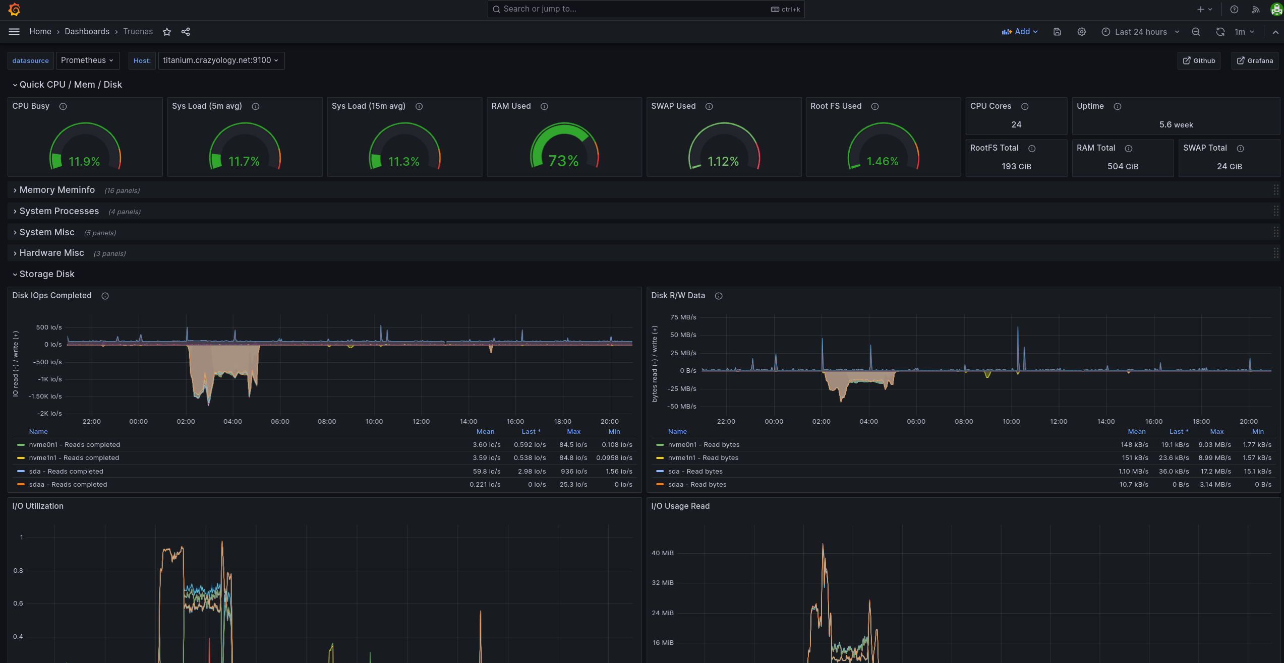 - job_name: truenas static_configs: - targets: - <NAS IP/fqdn>:9100 (Node Exporter) - <NAS IP/fqdn>:9177 (LIbvirt if using libvirt) - <NAS IP/fqdn>:9290 (IPMI if available)
