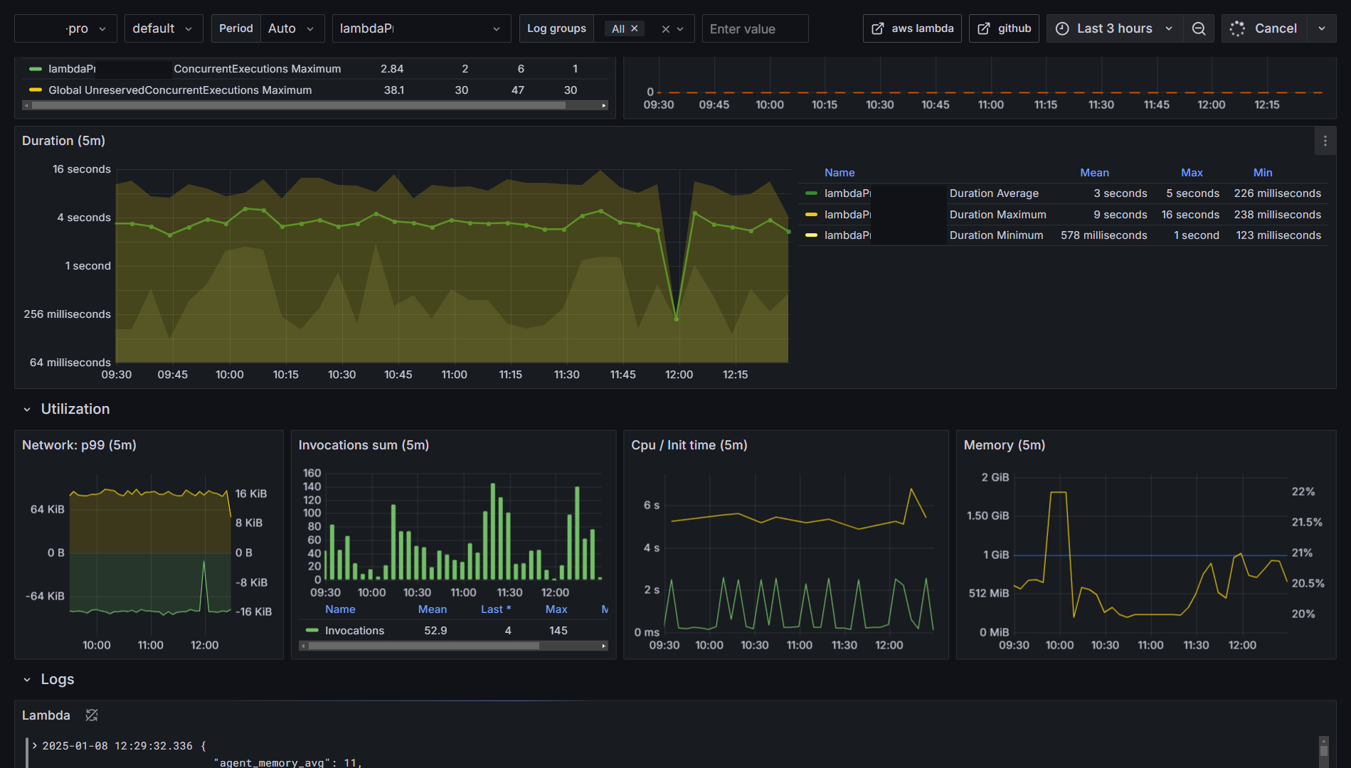 This dashboard uses aws lambda and lambda insights namespace by using the use method