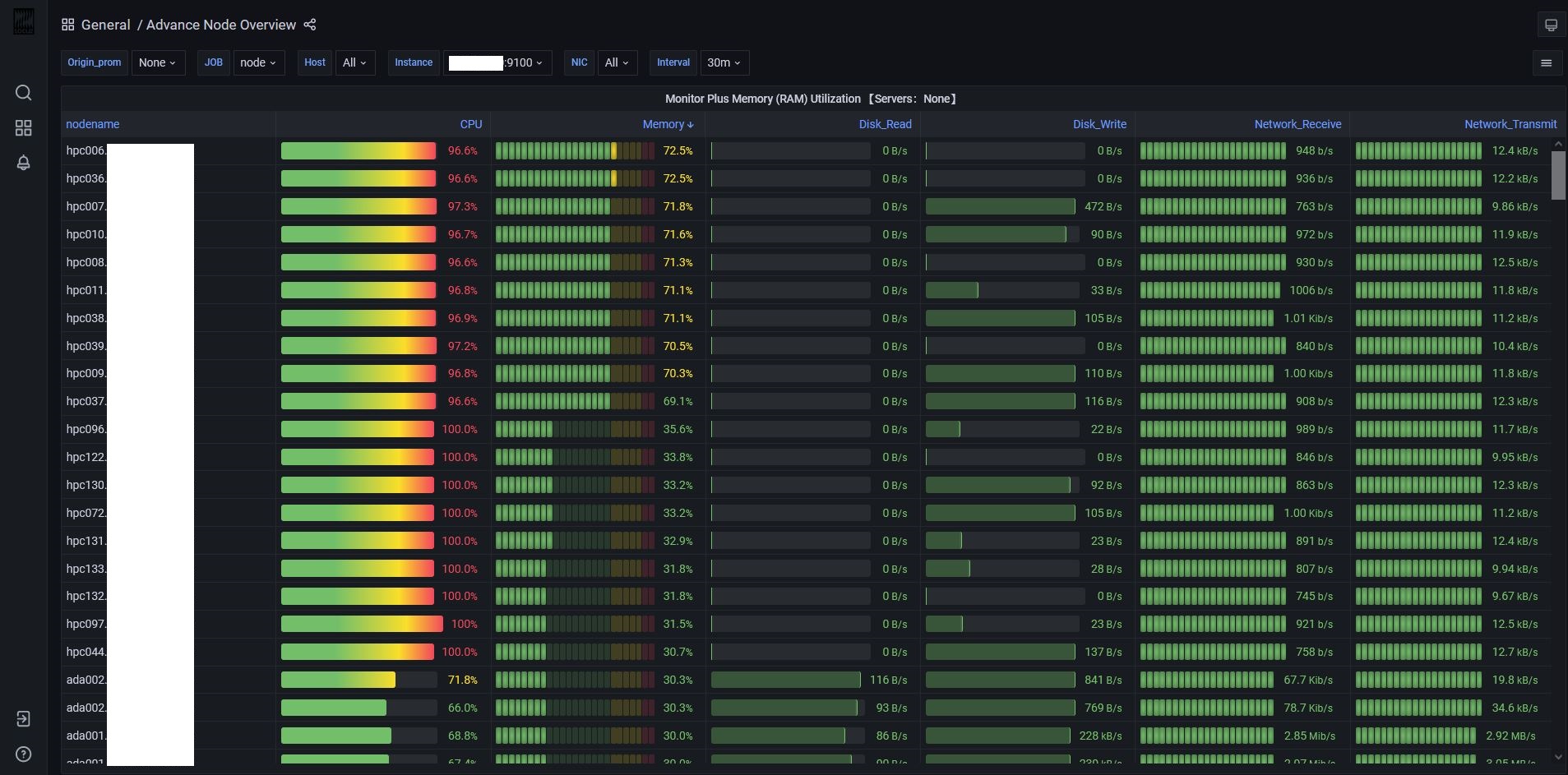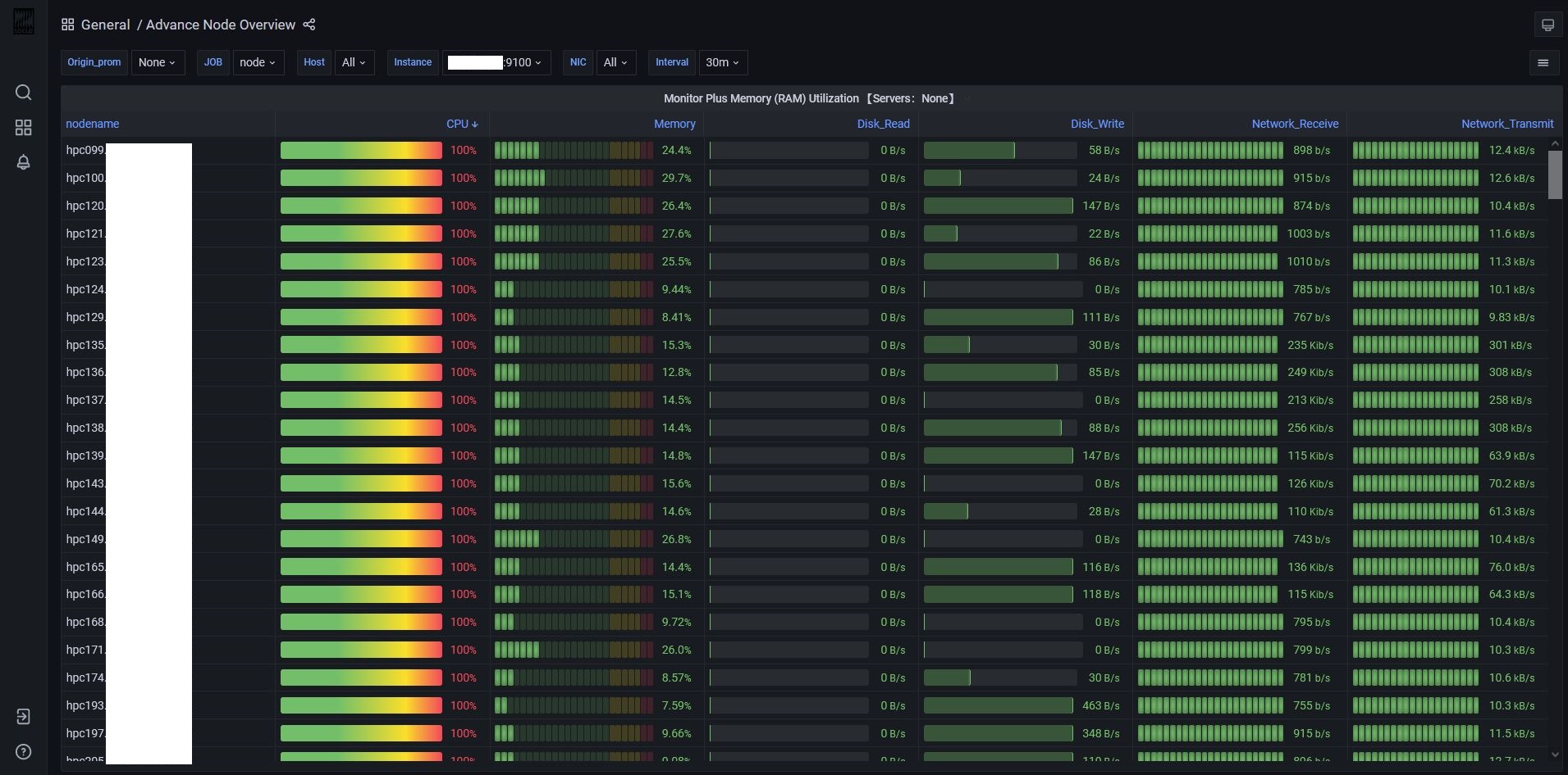 Node Exporter based HPC cluster resource utilization overview dashboard
