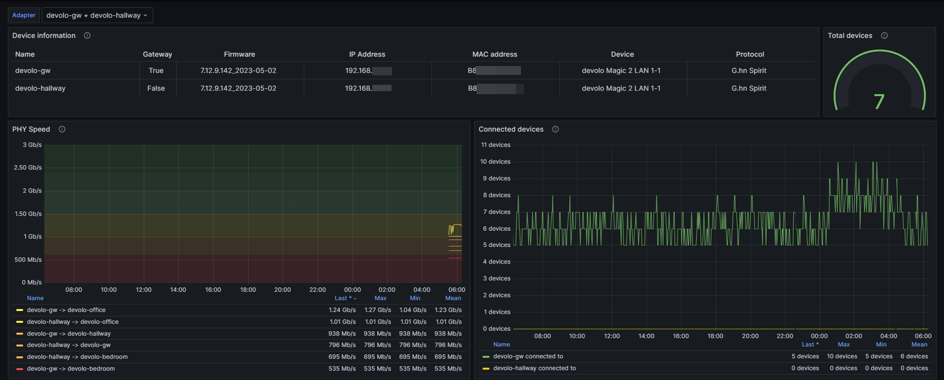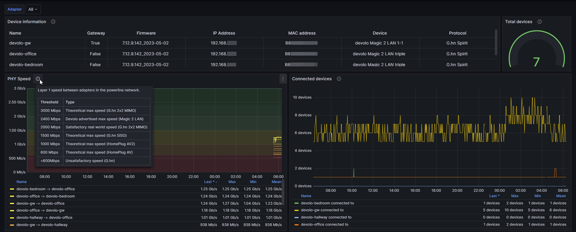 Note: this dashboard does not support the WiFi metrics for Devolo products.