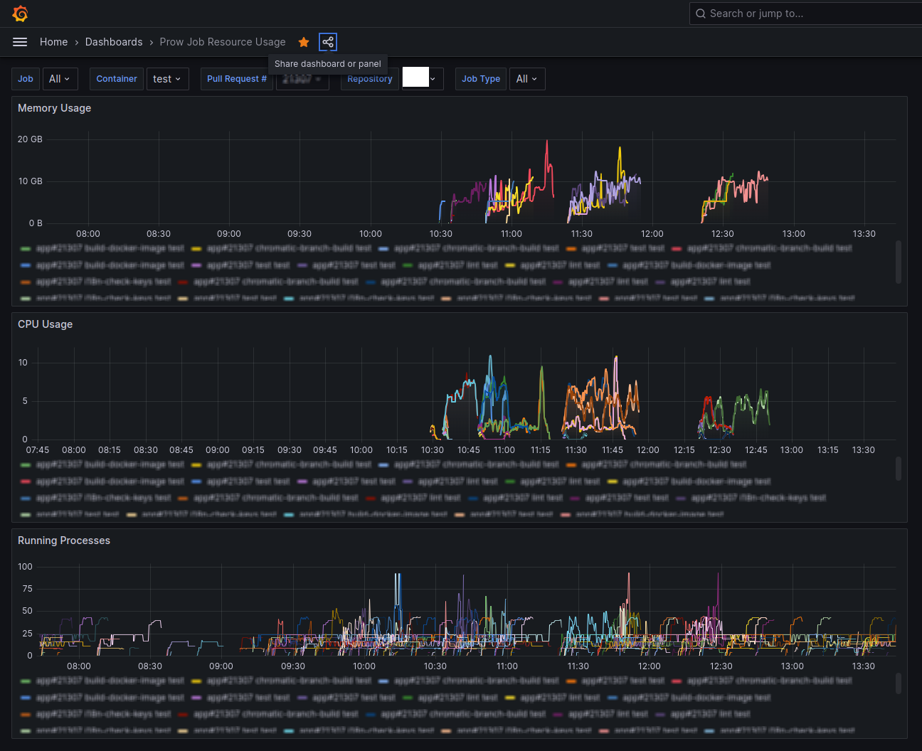 This assumes that the pods are running in the test-pods namespace. If you're running jobs in another namespace you'll have to edit the dashboard.