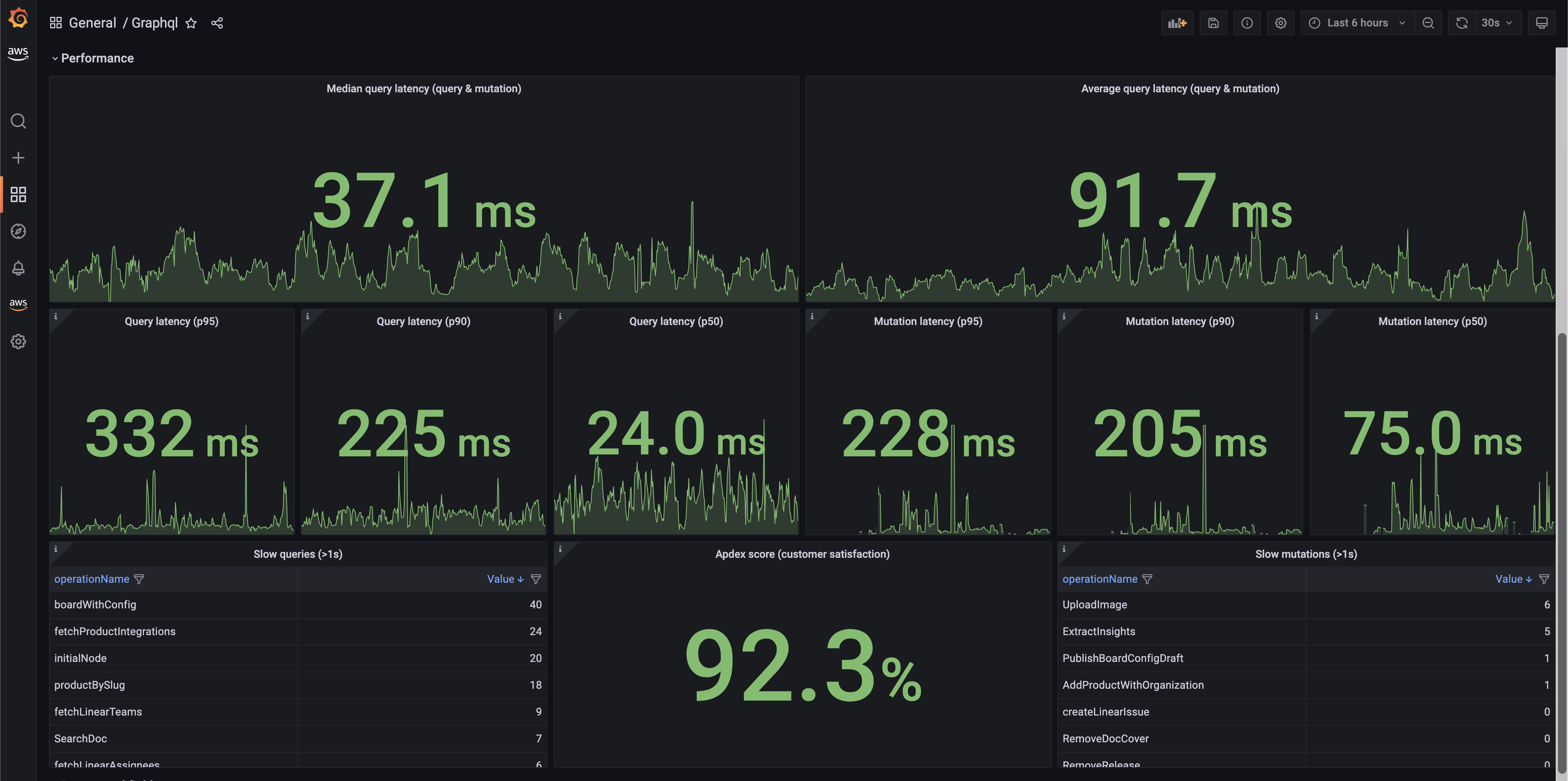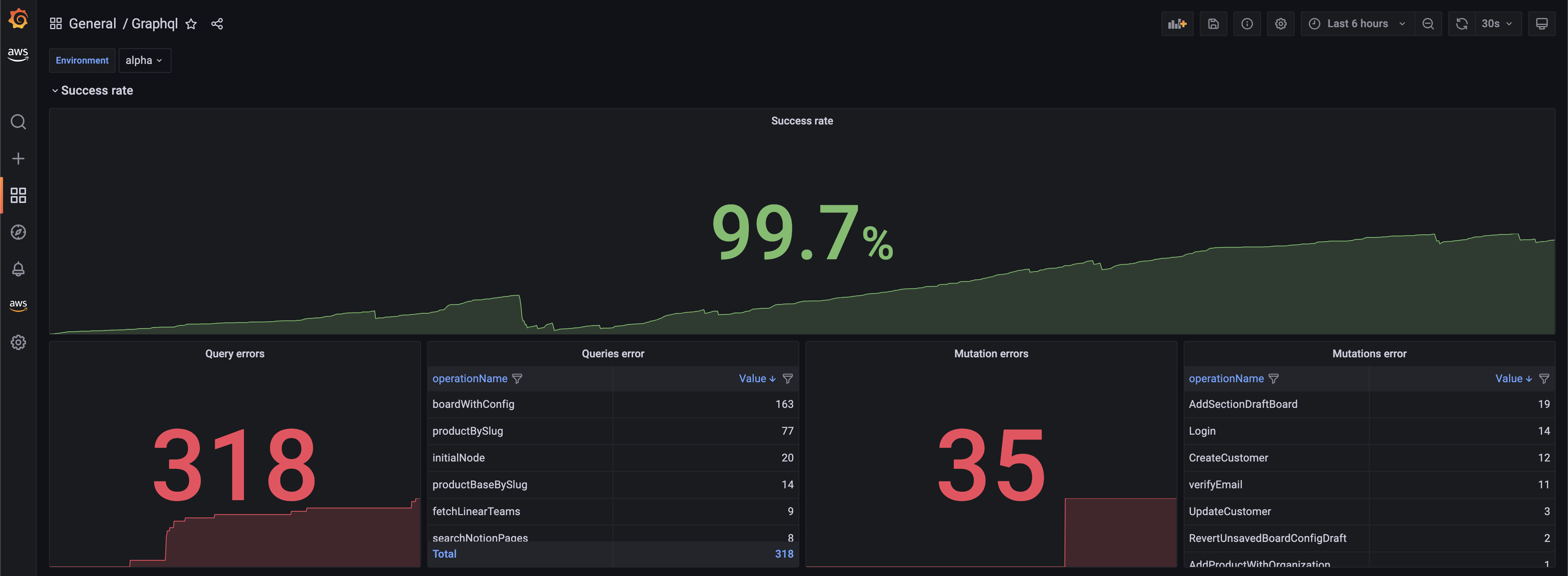 GraphQL dashboard based on the Envelop wrapper by The Guild 👉 https://the-guild.dev/graphql/envelop/plugins/use-prometheus