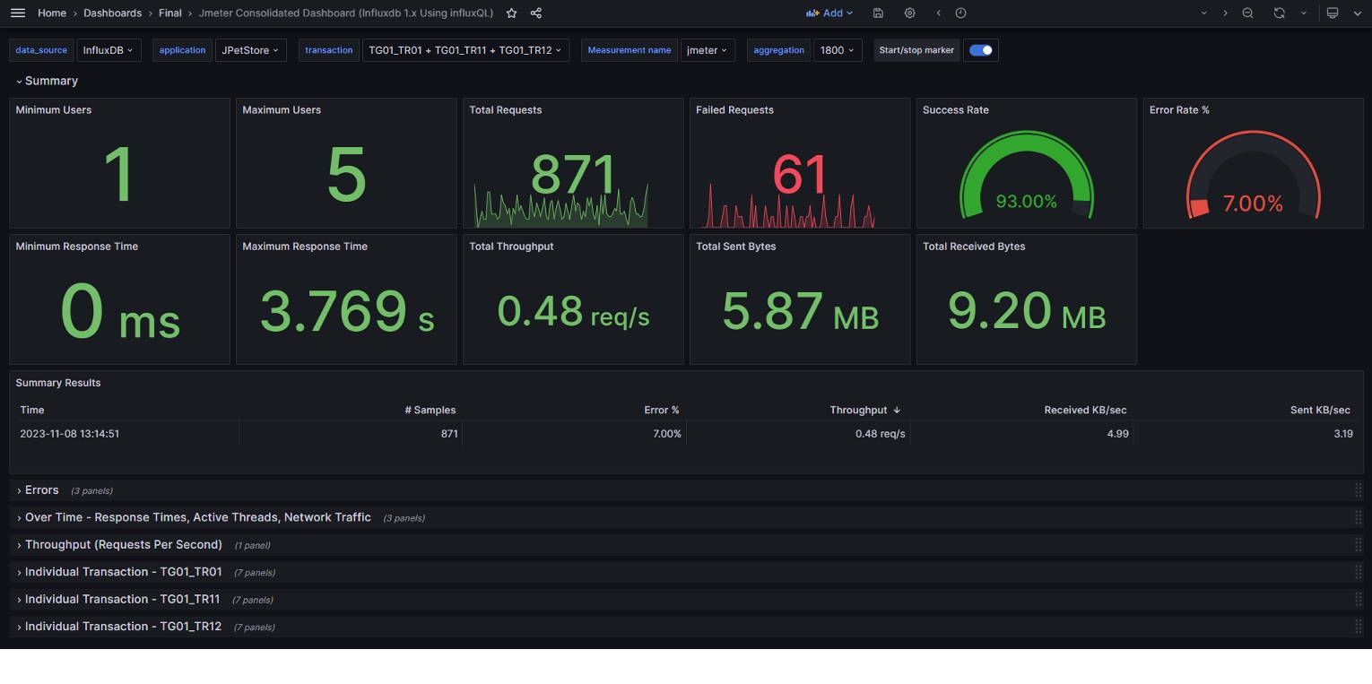 Jmeter Consolidated Dashboard (Influxdb 1.x Using influxQL)