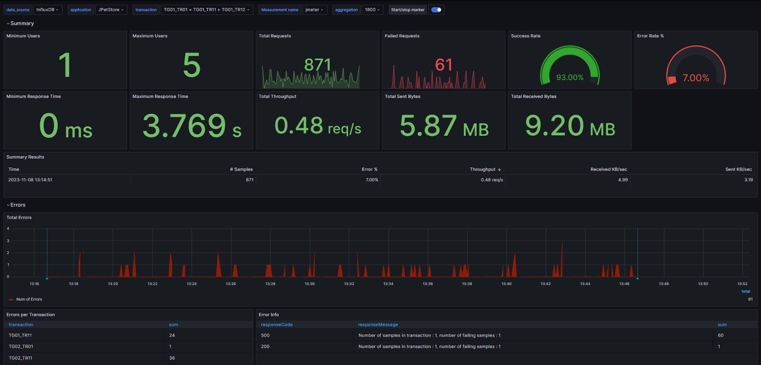 Dashboard for presenting JMeter test executions metrics