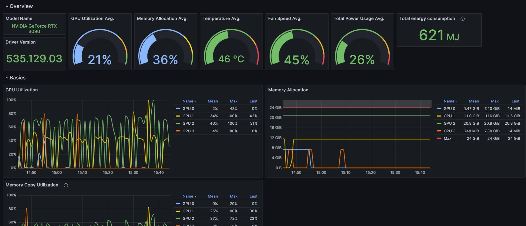This dashboard is to display the metrics from DCGM Exporter and it is designed to work with Linux Server integration.