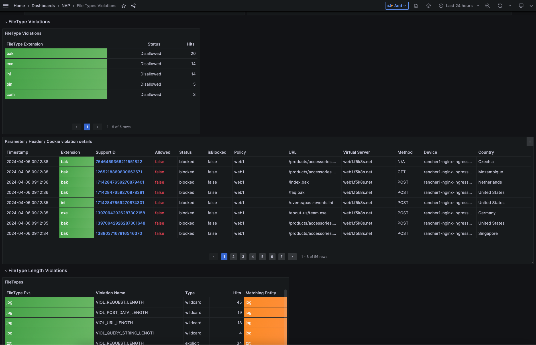 This Dashboard provides more visibility into the logs generated by NGINX App Protect. This is part of a series of NGINX App Protect Dashboards