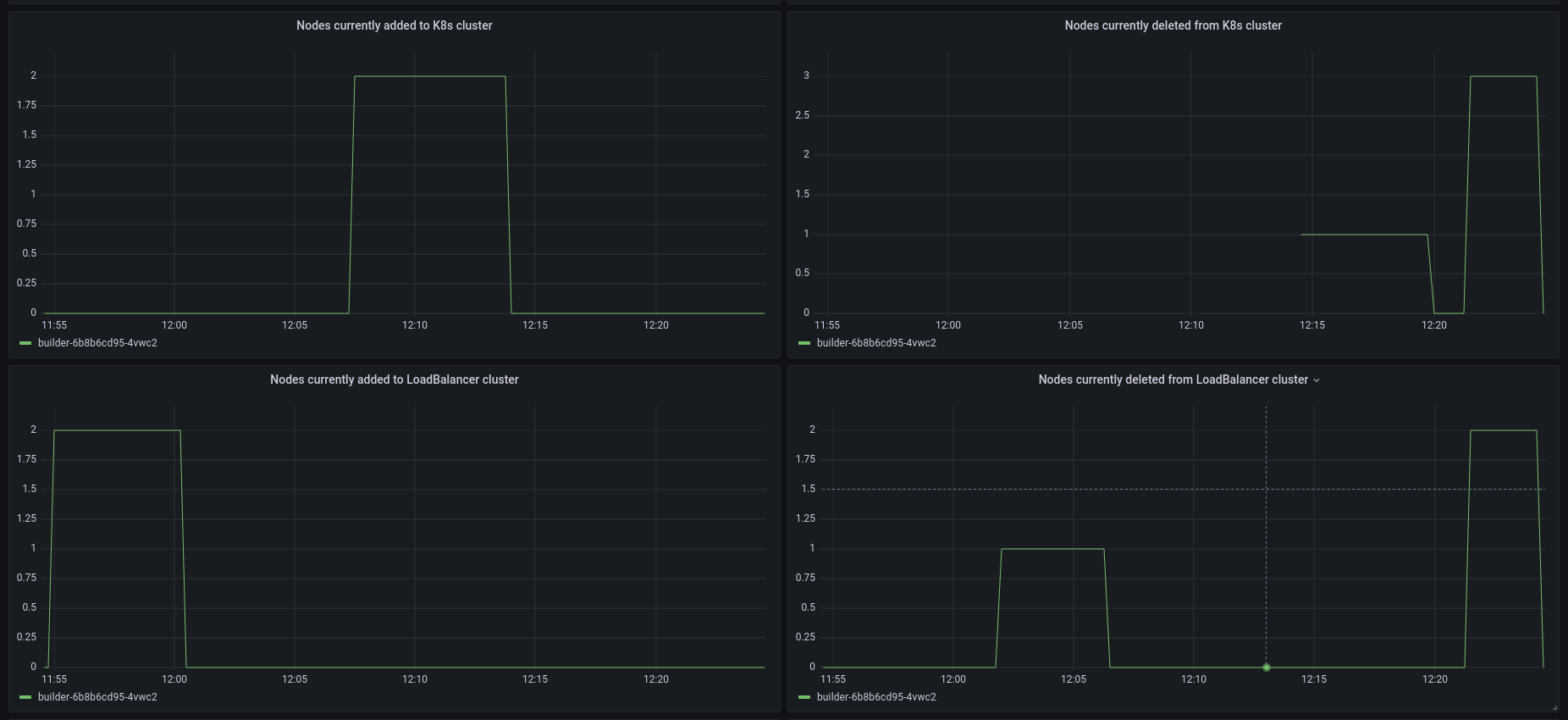 - Currently added/deleted nodes to/from K8s/LB cluster
