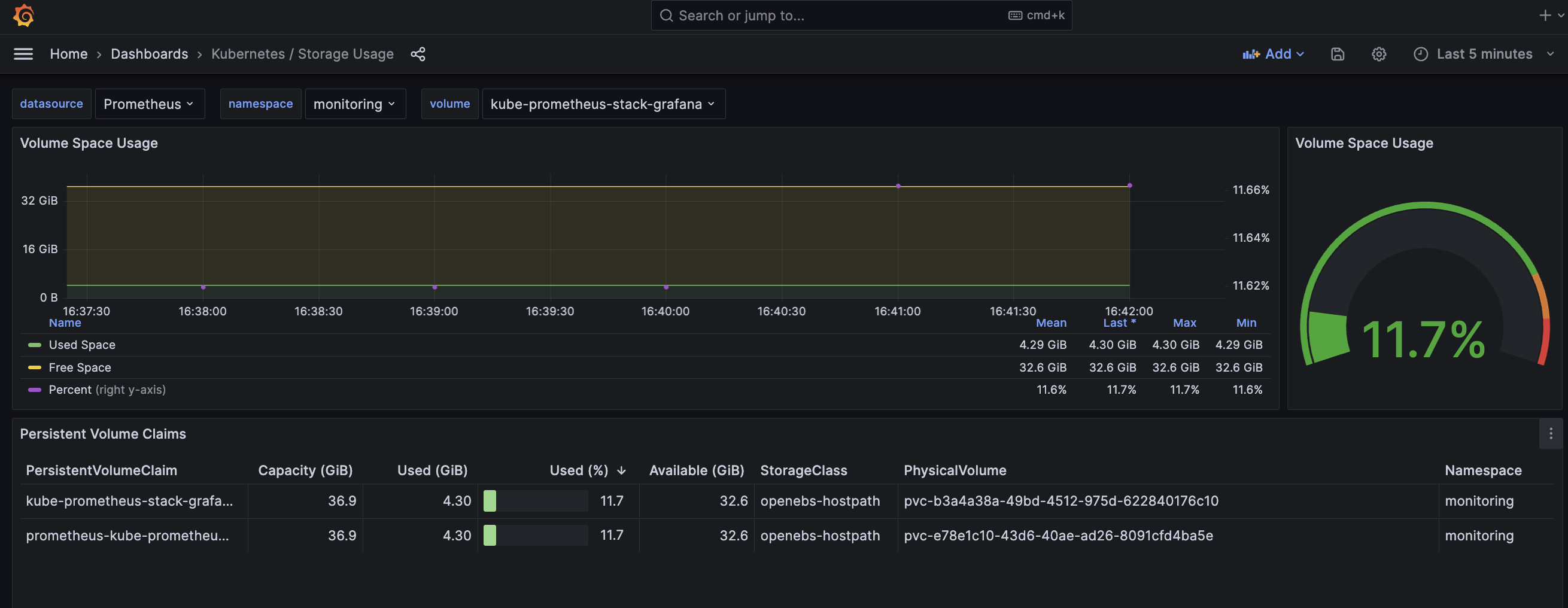 Displays PersistentVolumeClaim usage in Kubernetes