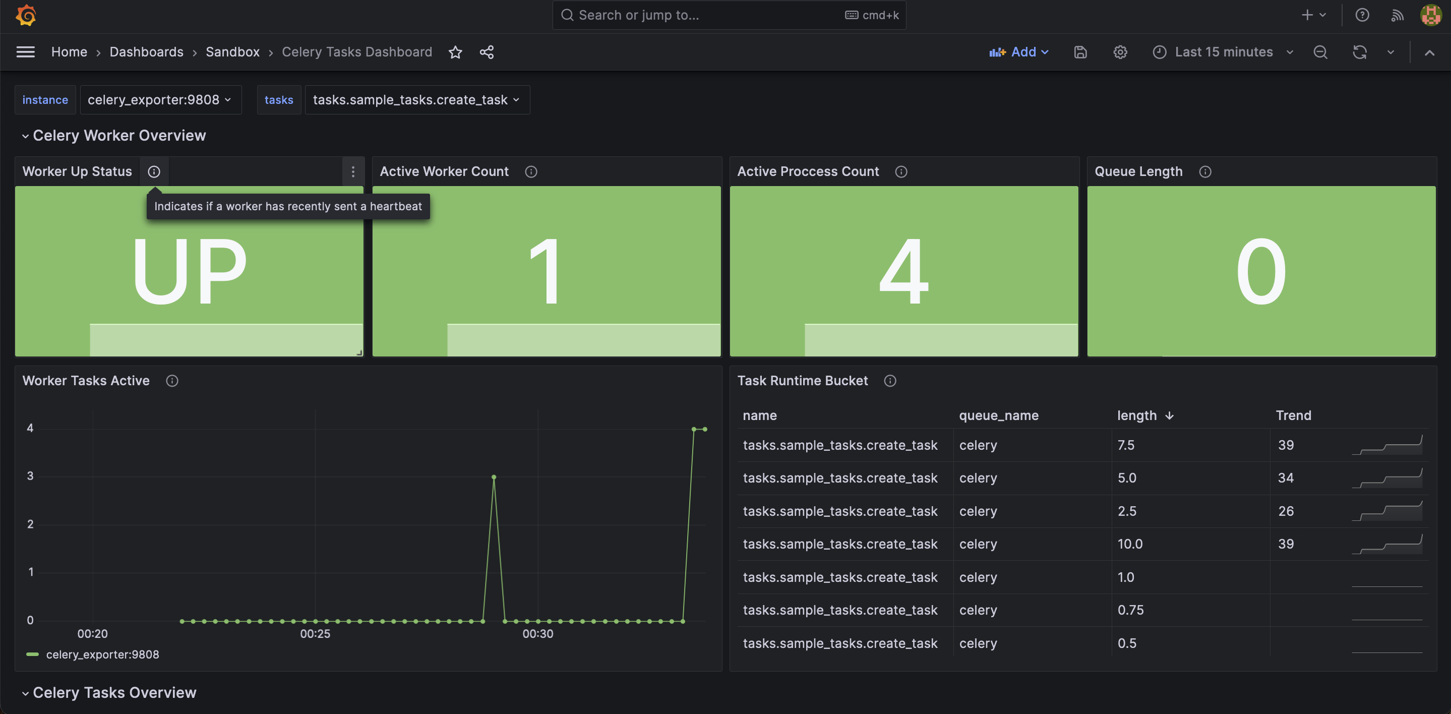 This dashboard is suitable for monitoring Celery tasks and workers.