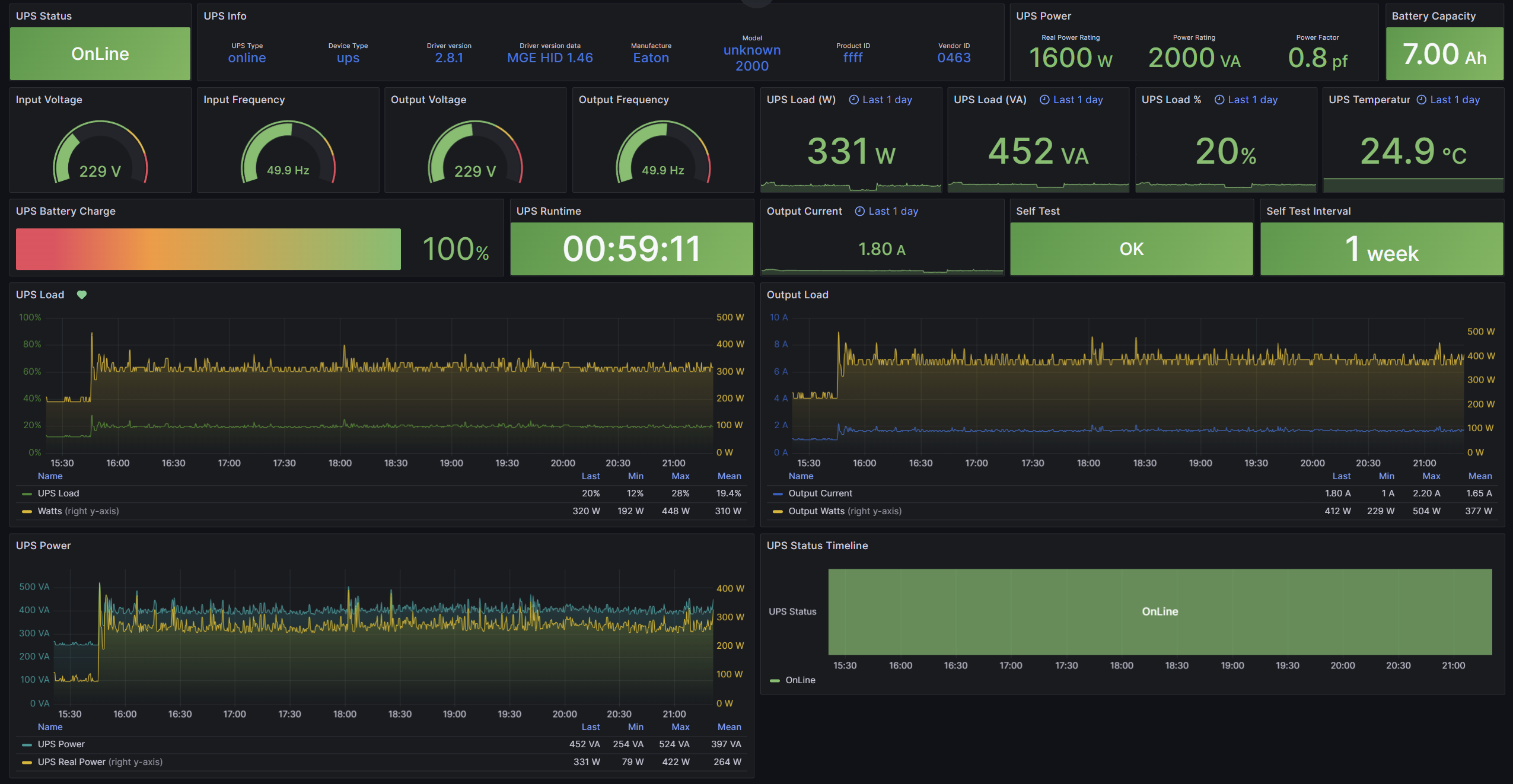 A dashboard to display data exported from Network UPS Tools (NUT) for UNRAID to InfluxDBv2 by nut-influxdbv2.