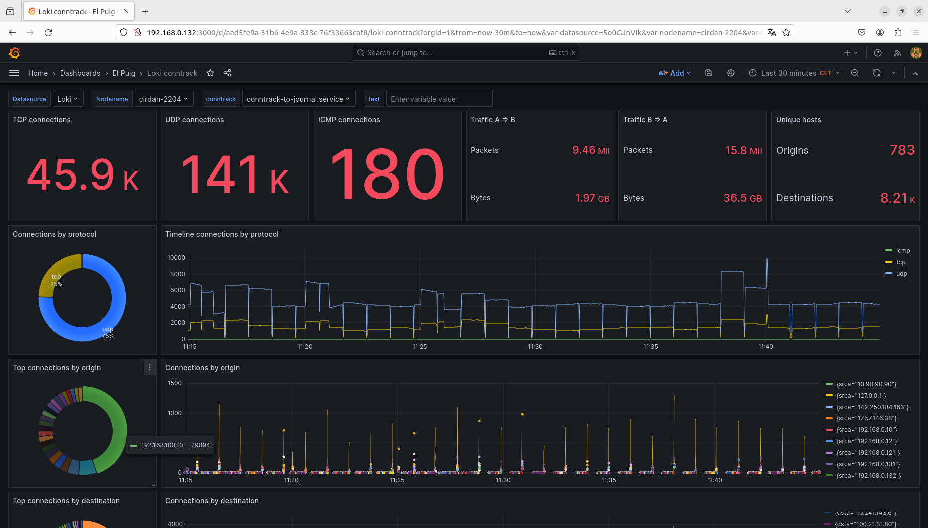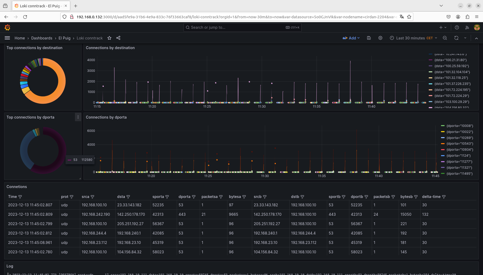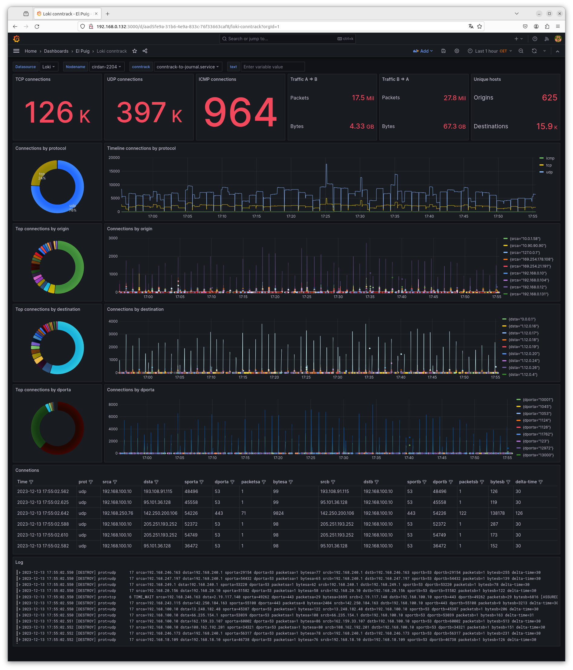 This dashboard uses Loki to display information about the network connections of a gateway.