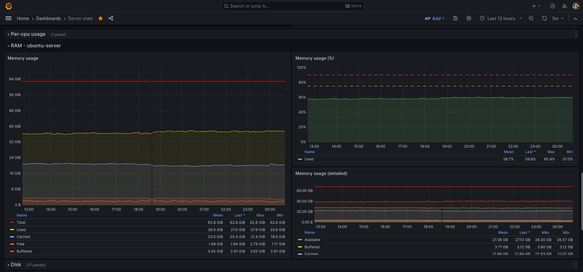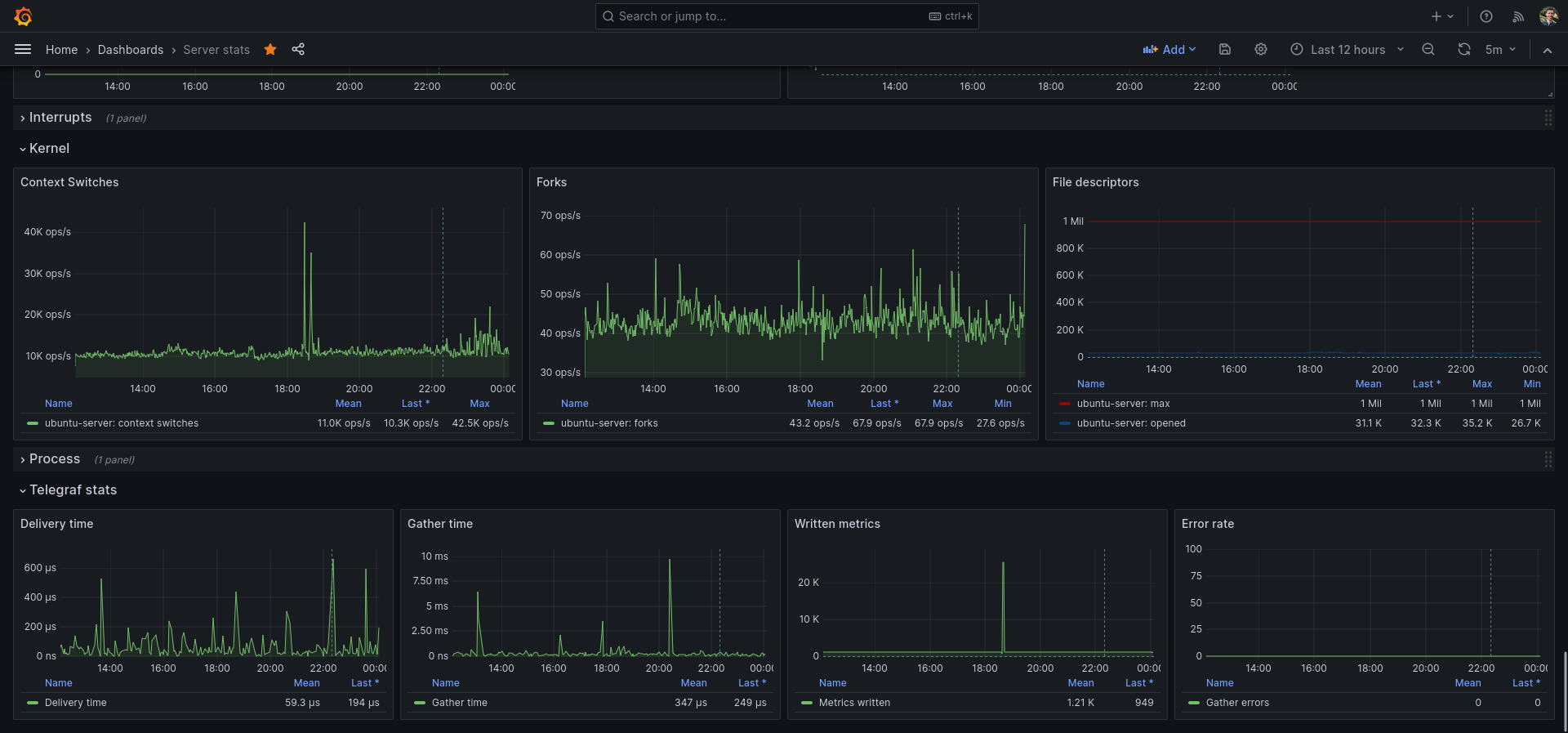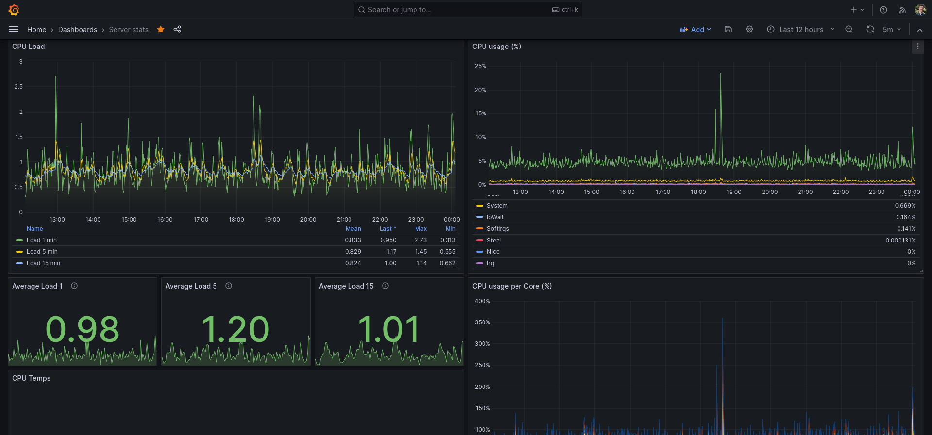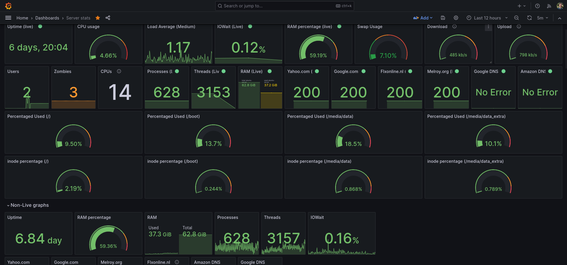 I use this dashboard as my main Grafana dashboard for monitoring my server and Linux machine. You do need Telegraf & InfluxDB.