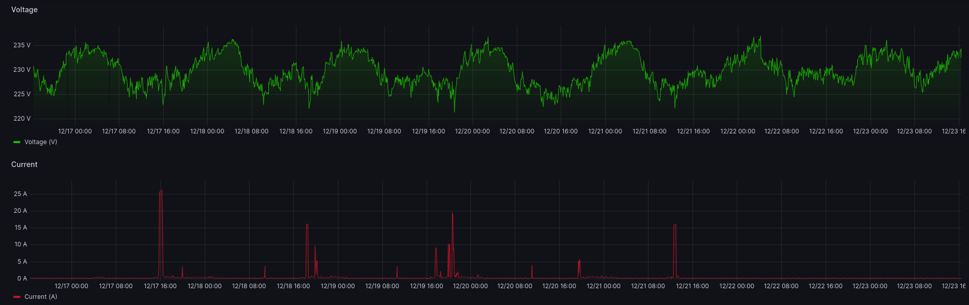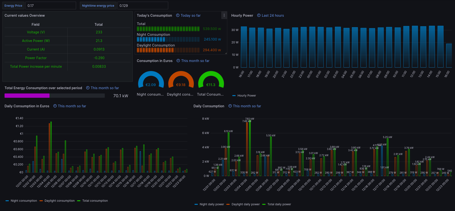 Power panel metrics from the shelly em module.