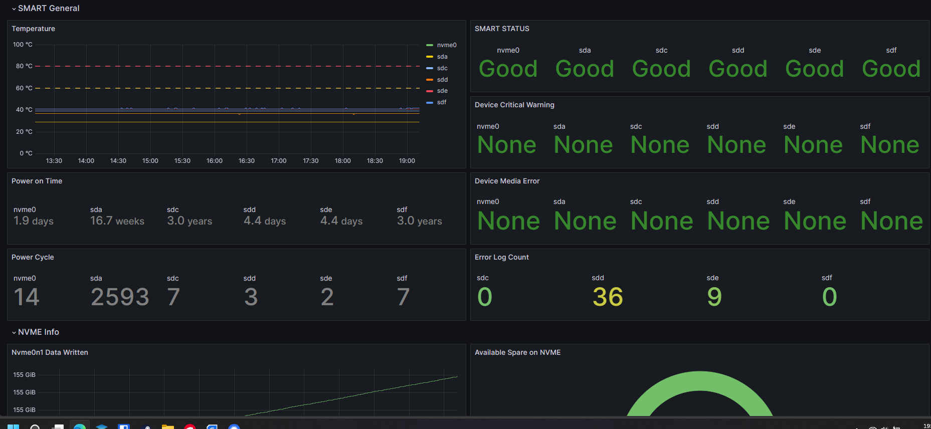 This is a Dahsboard for: Prometheus with - > https://github.com/prometheus-community/smartctl_exporter
