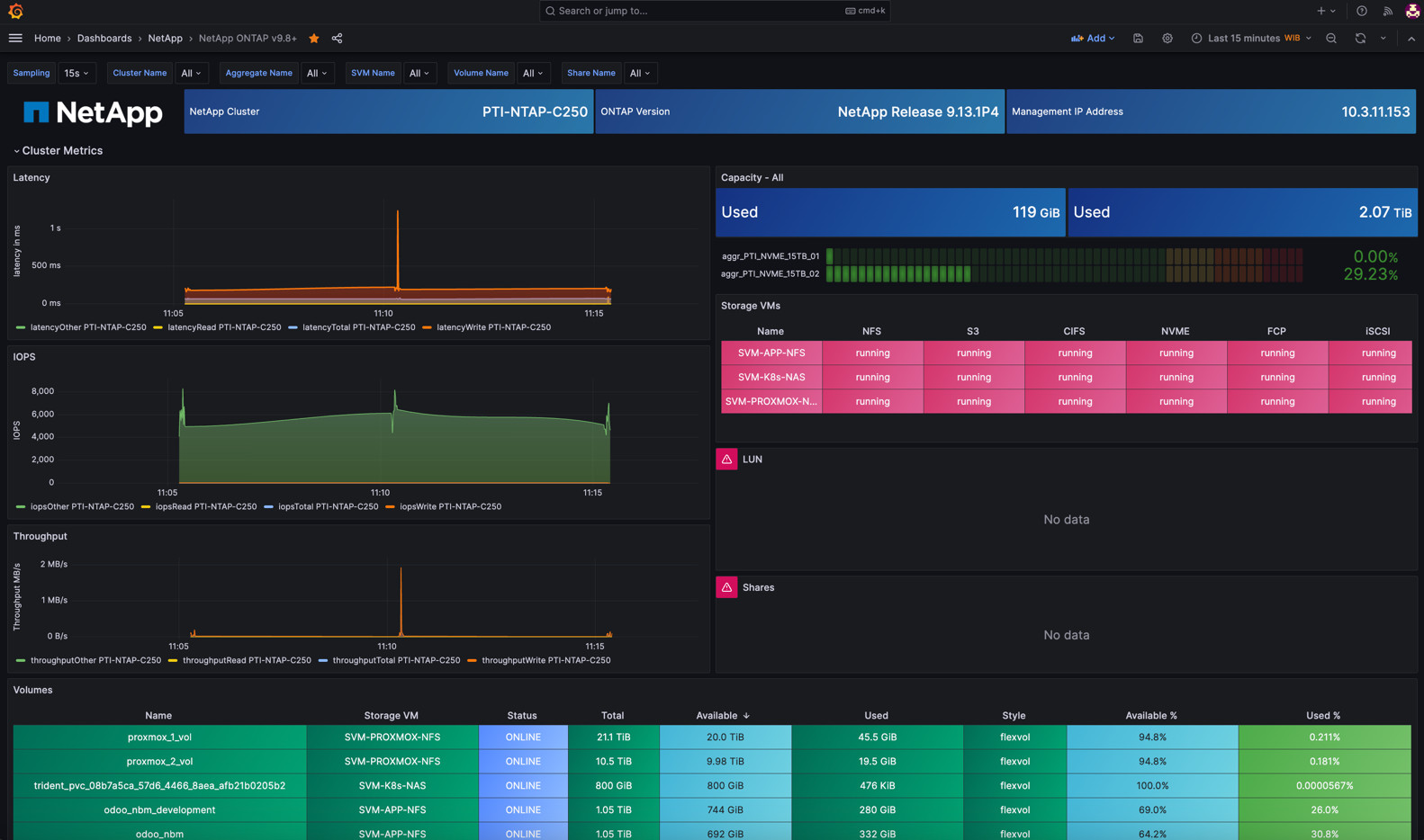 Grafana Dashboard for NetApp ONTAP v9.13 with InfluxDB 2.0.0