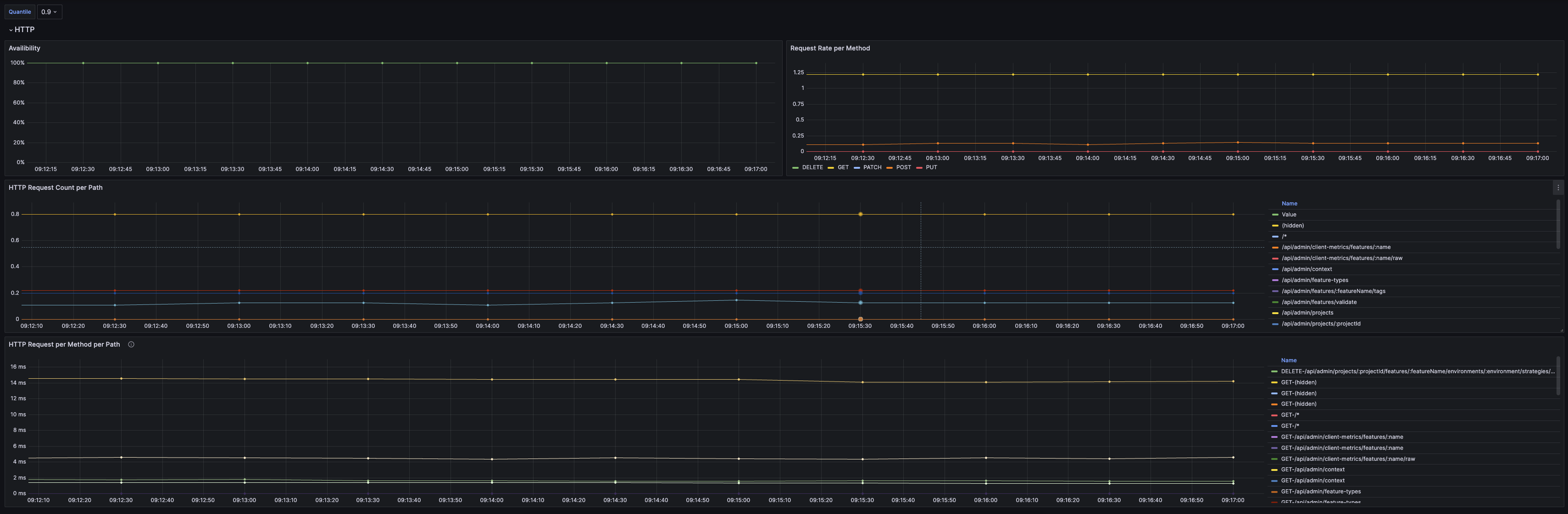 This Grafana dashboard is designed to provide a comprehensive overview of the Unleash server's performance metrics, feature toggle usage, and system health status. It aims to empower administrators and developers with critical insights into the Unleash server's behavior and facilitate informed decision-making.