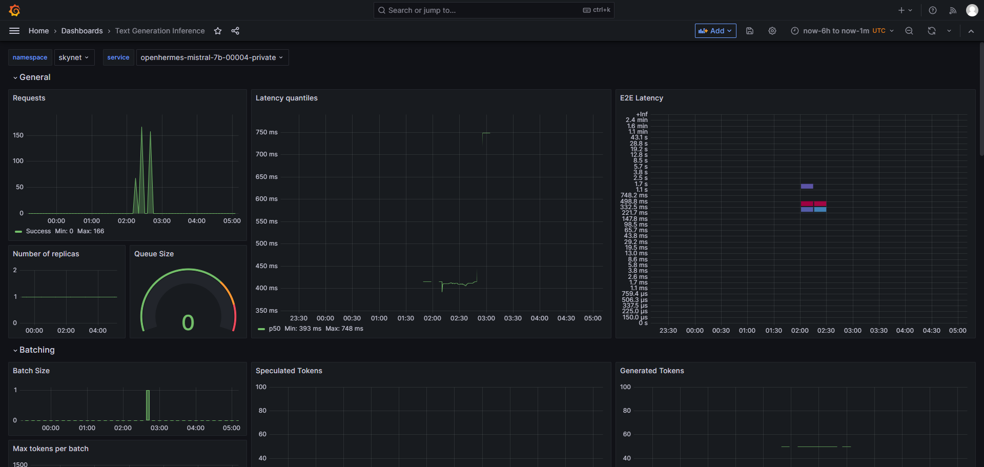 This serves as a fundamental dashboard example for monitoring text generation inference deployed on Kubernetes, leveraging Knative-Serving.