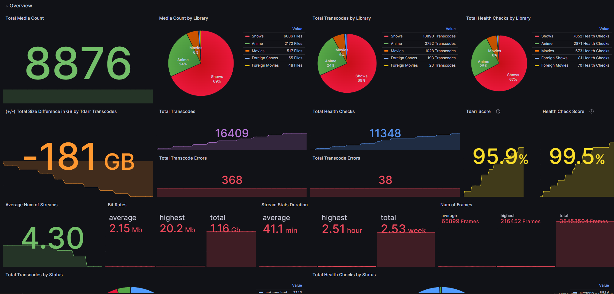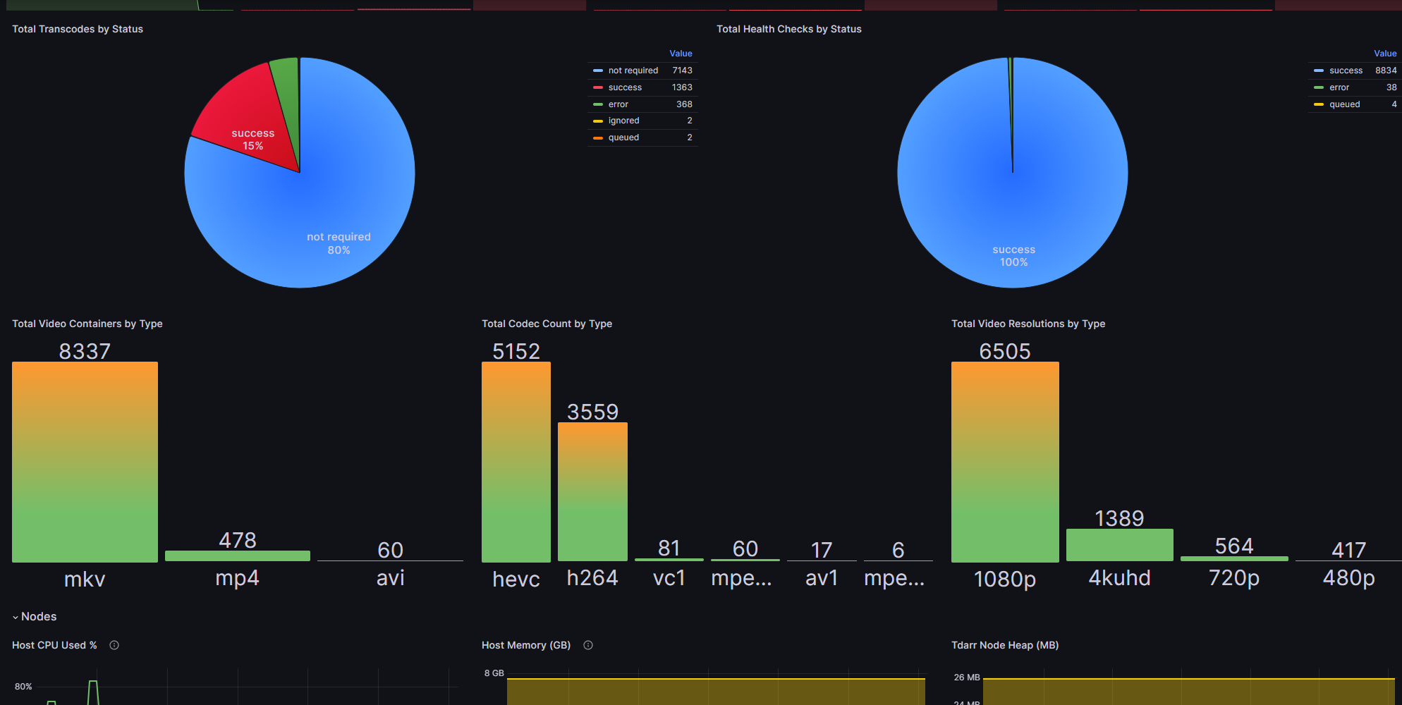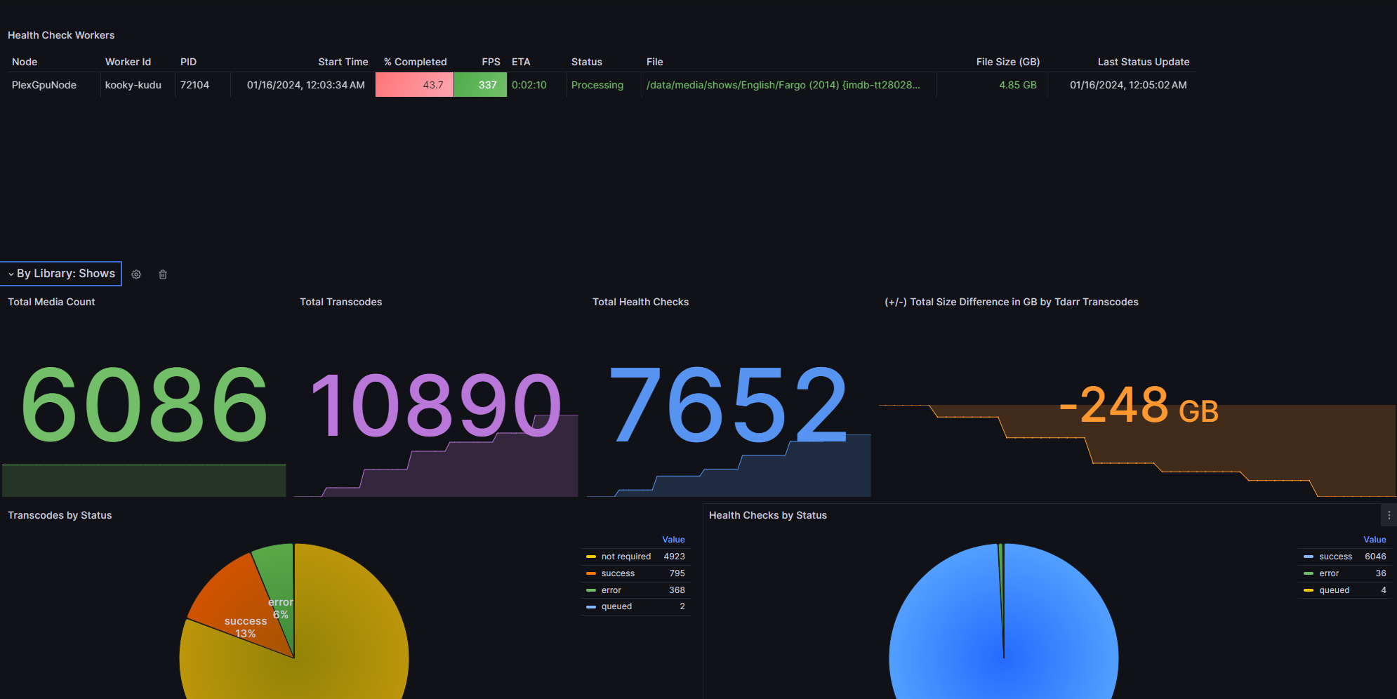 A Grafana dashboard for tdarr-exporter