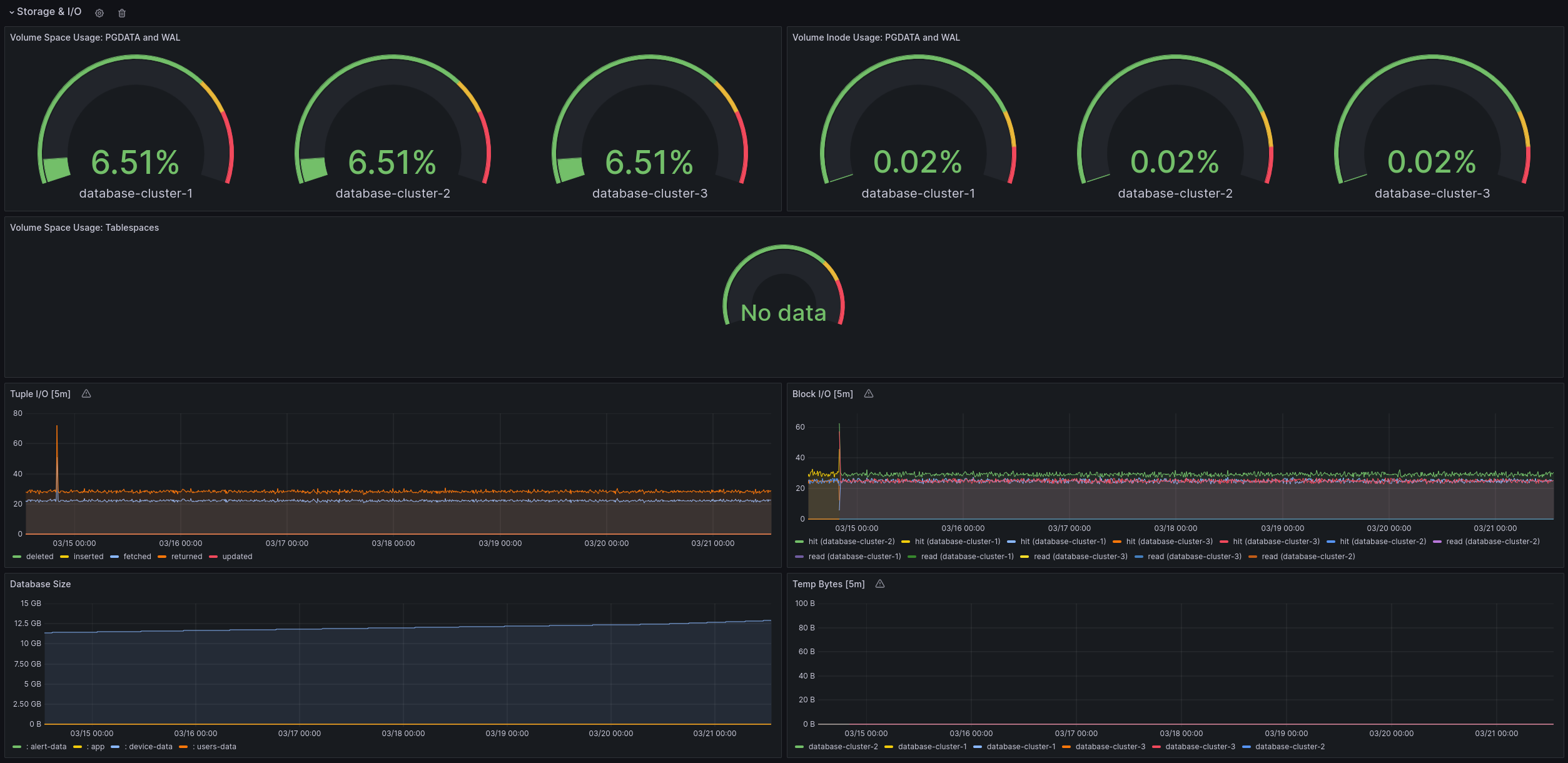 A list of basic monitoring queries can be found in the default-monitoring.yaml file that is already installed in your CloudNativePG deployment (see "Default set of metrics").