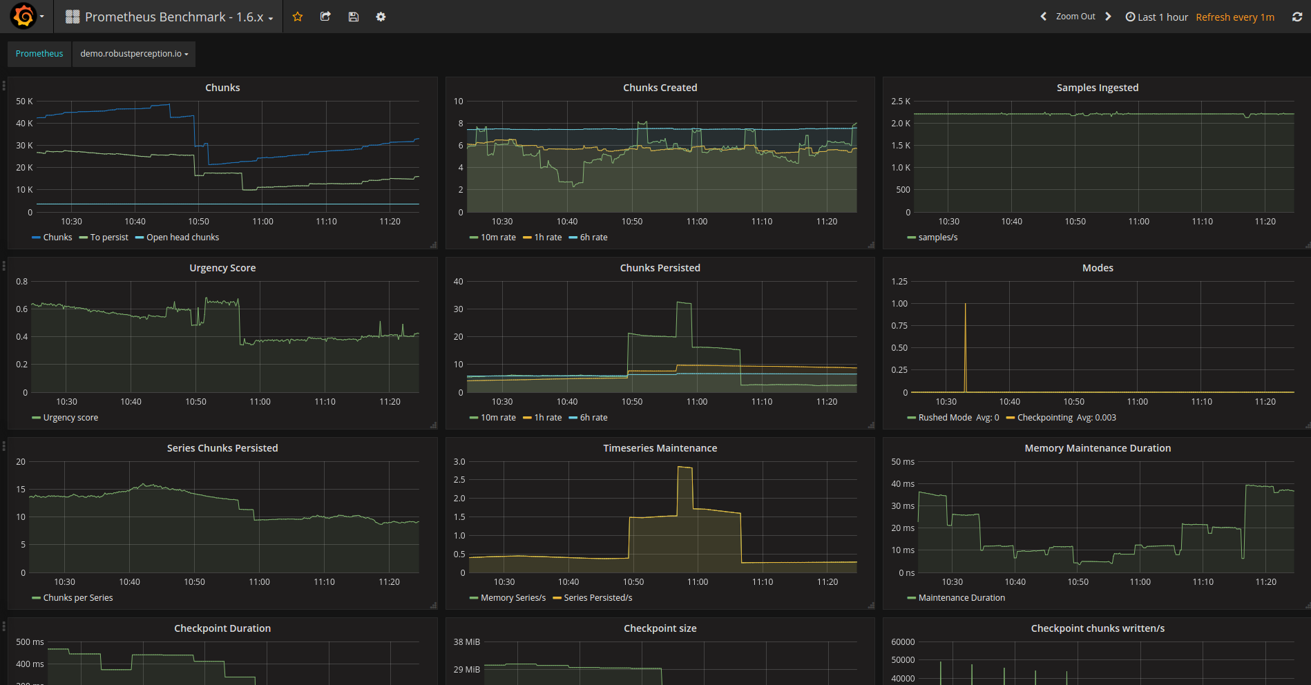Metrics useful for benchmarking and loadtesting Prometheus itself. Designed primarily for Prometheus 1.6.x