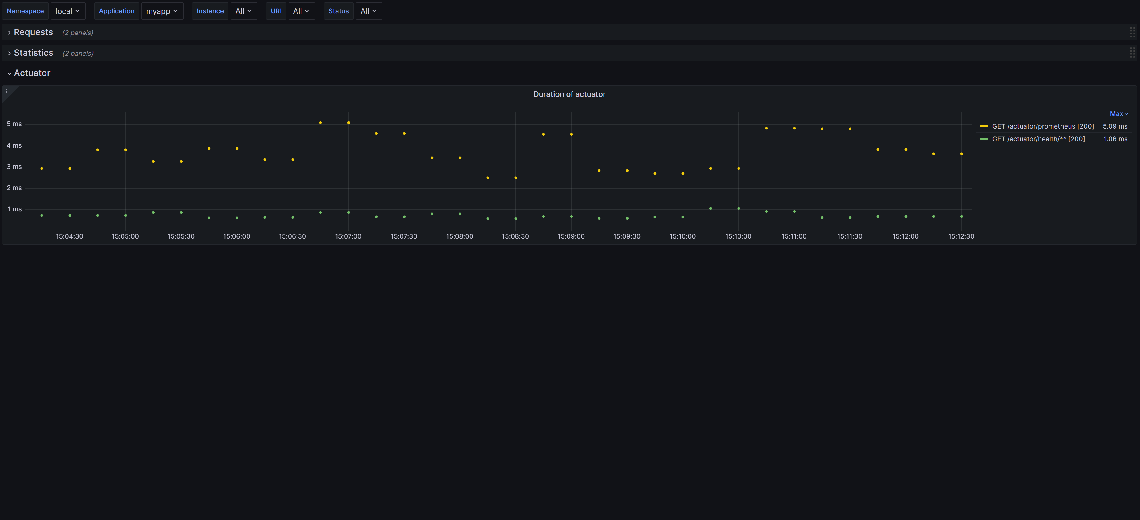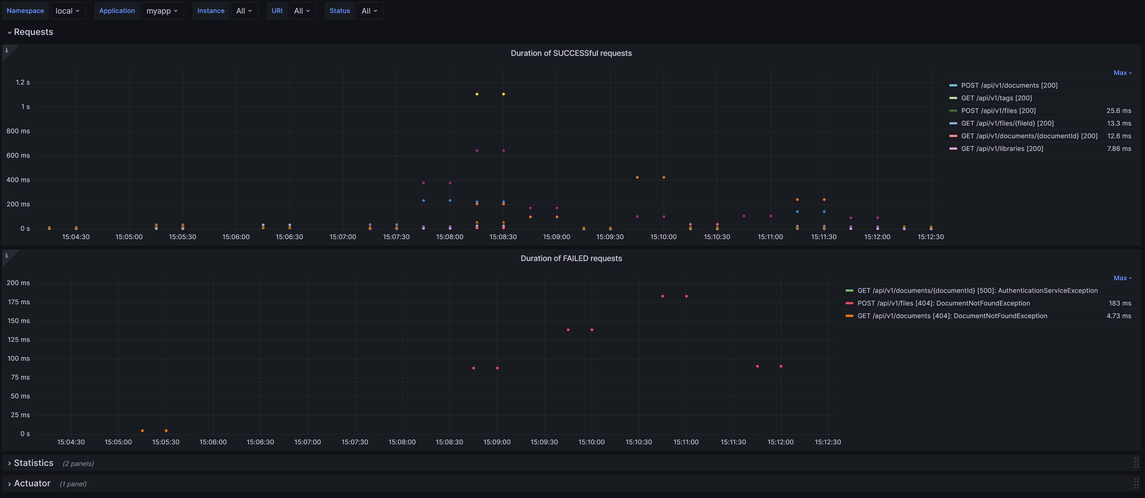 Spring Boot (Micrometer) with HTTP requests.