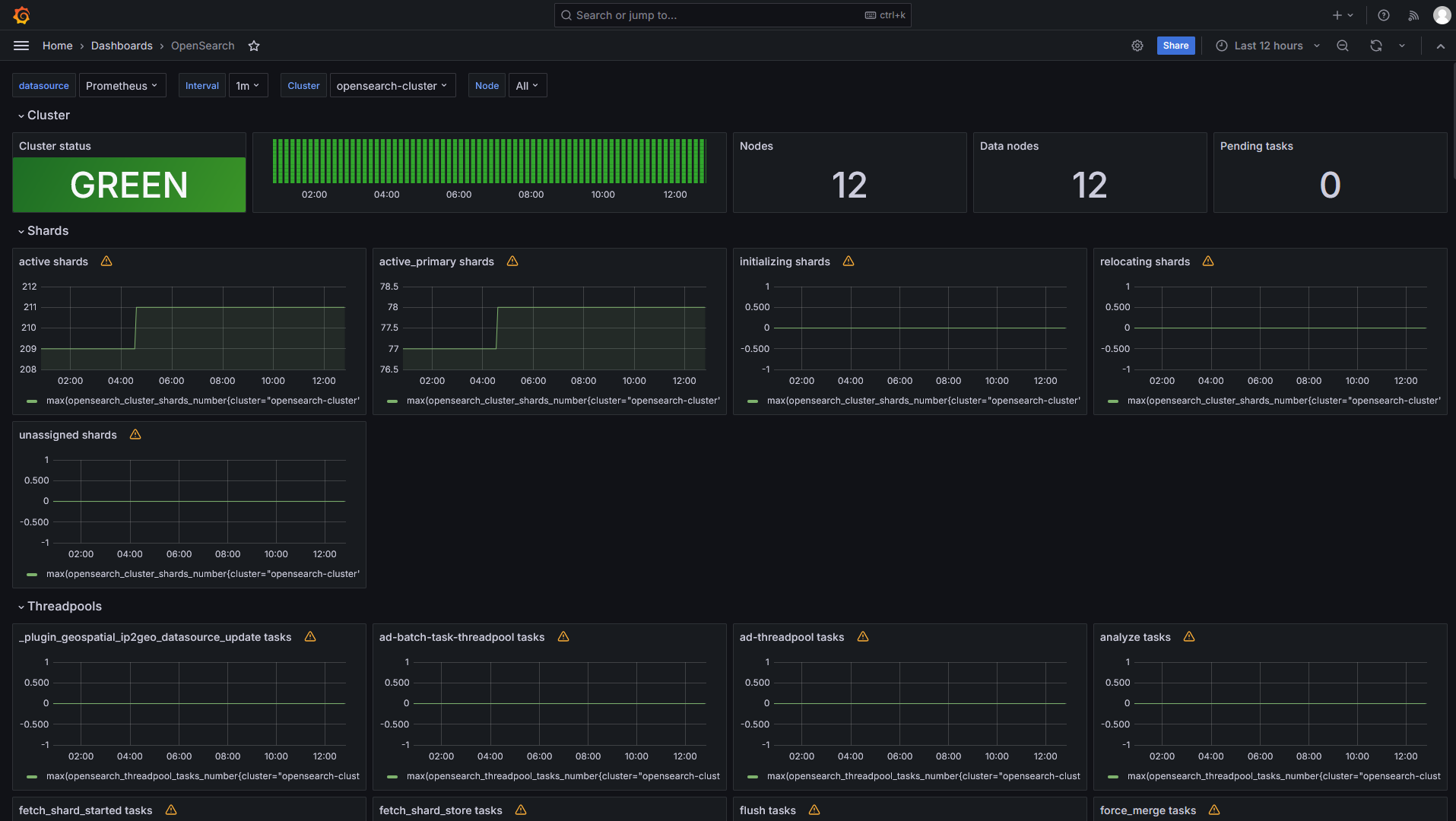 This dashboard is the result of the build of the mixin dashboards published by the OpenSearch Prometheus Exporter plugin by Aiven (https://github.com/Aiven-Open/prometheus-exporter-plugin-for-opensearch/tree/mixin)
