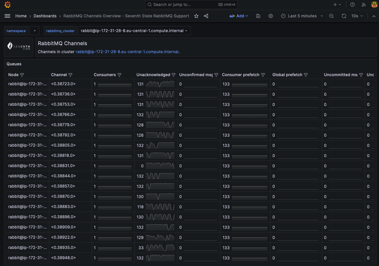 Overview of all channels in a RabbitMQ Cluster