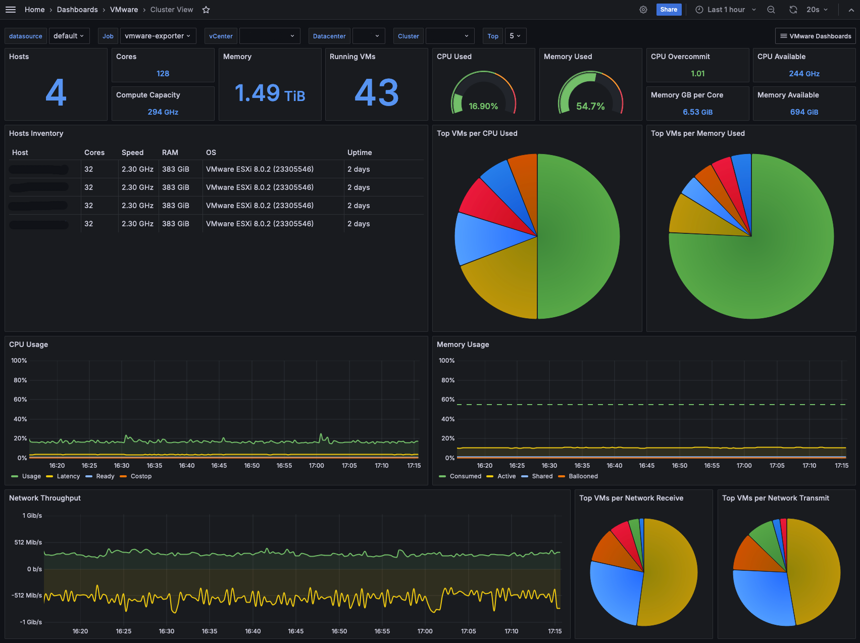 Easily monitor VMware vSphere, a virtualization platform that helps consolidate IT infrastructure, with Grafana Cloud's out-of-the-box monitoring solution.