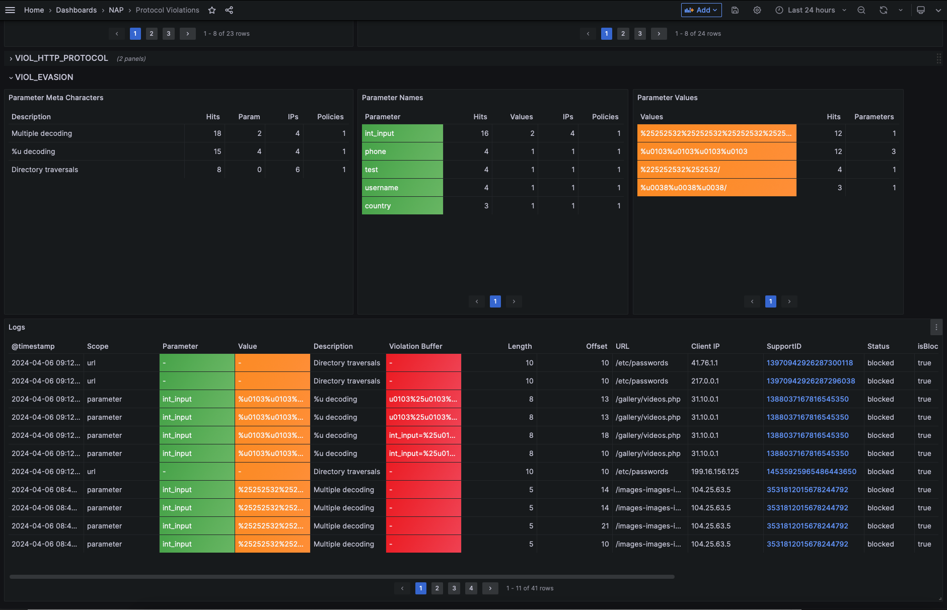 This Dashboard provides more visibility into the logs generated by NGINX App Protect. This is part of a series of NGINX App Protect Dashboards