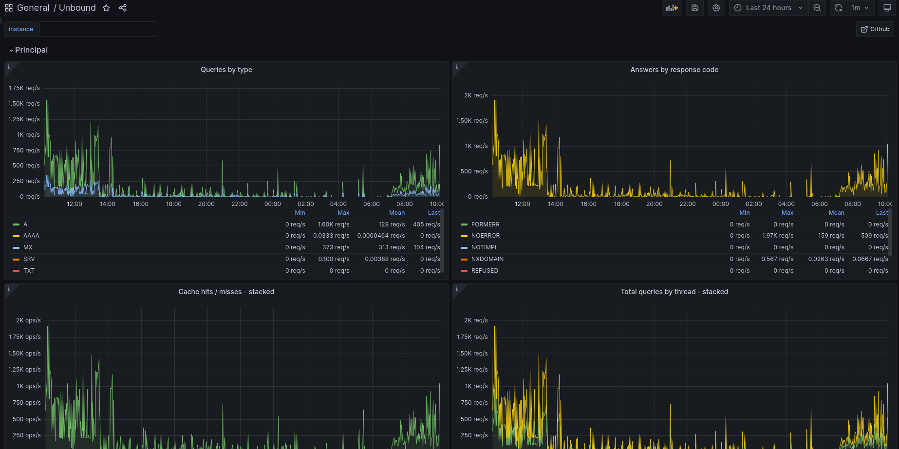 https://grafana.com/grafana/dashboards/11705-unbound/ https://www.psisci.name/nms/grafana_unbound_prometheus/