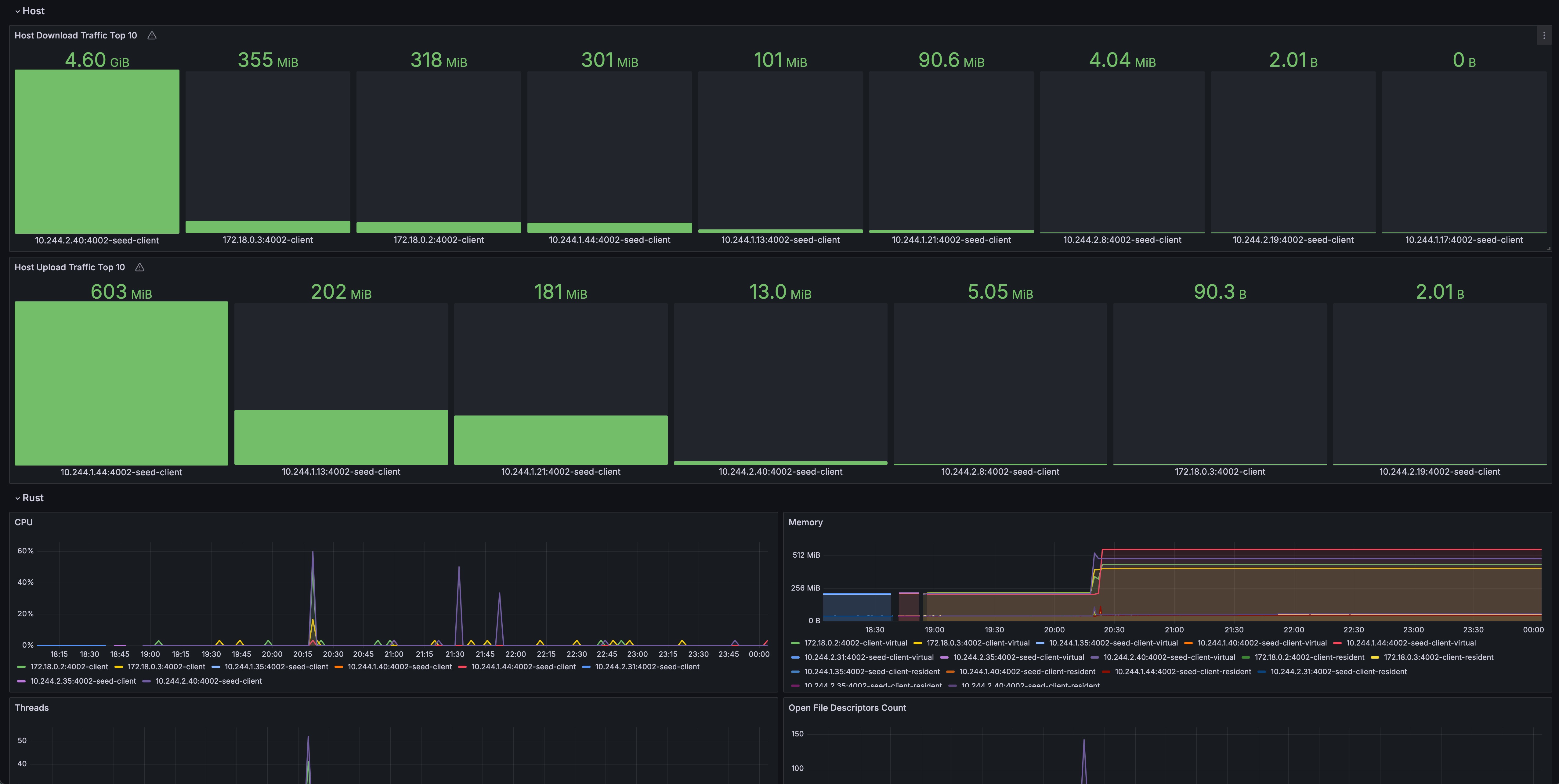 Grafana dashboard for dragonfly client and dragonfly seed client.