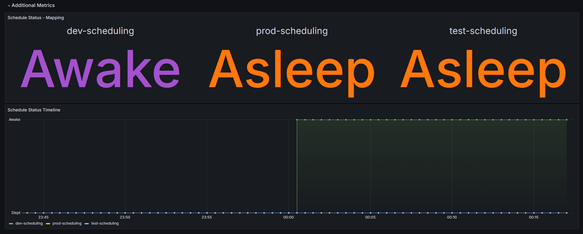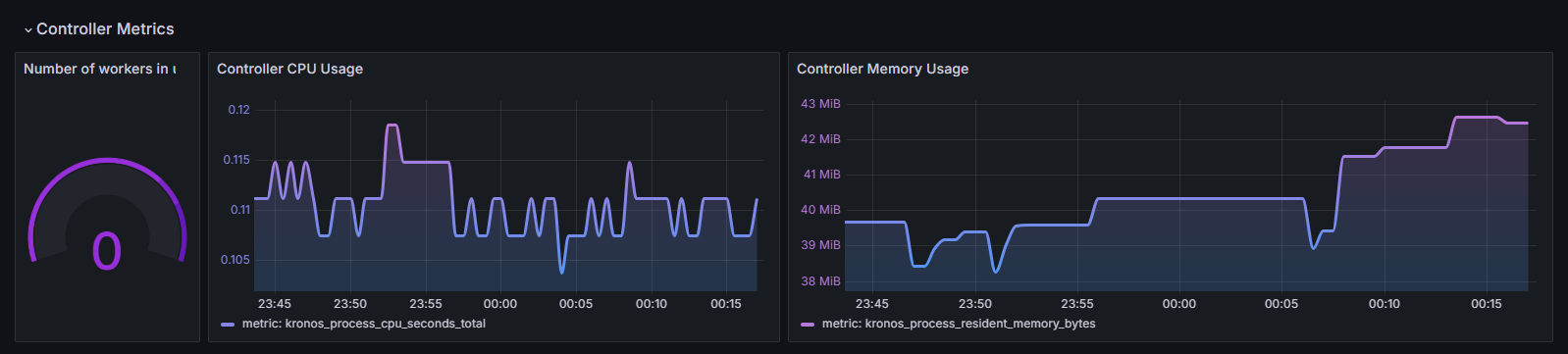 Welcome to the Grafana dashboard for the Kronos Kubernetes Operator! This dashboard provides a comprehensive view of both controller metrics and additional metrics exposed by the custom controller, offering valuable insights into the performance and status of your Kubernetes resources managed by Kronos.