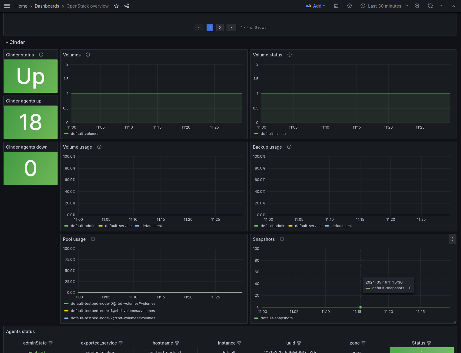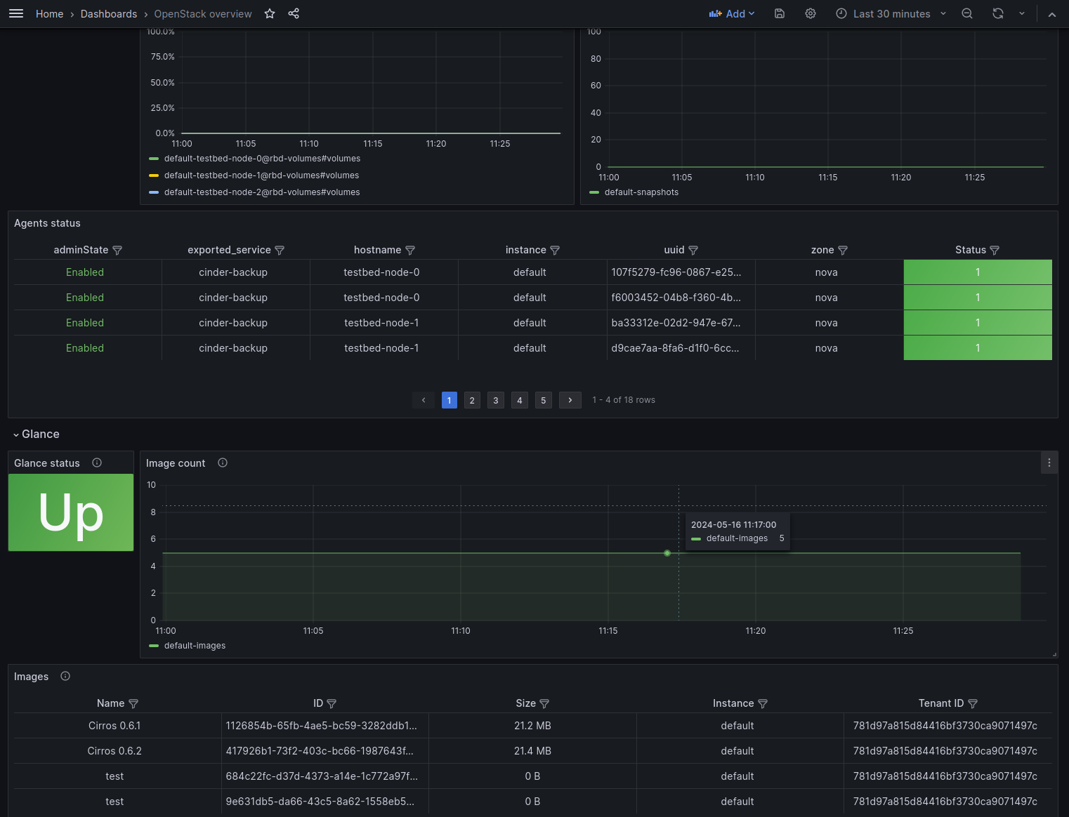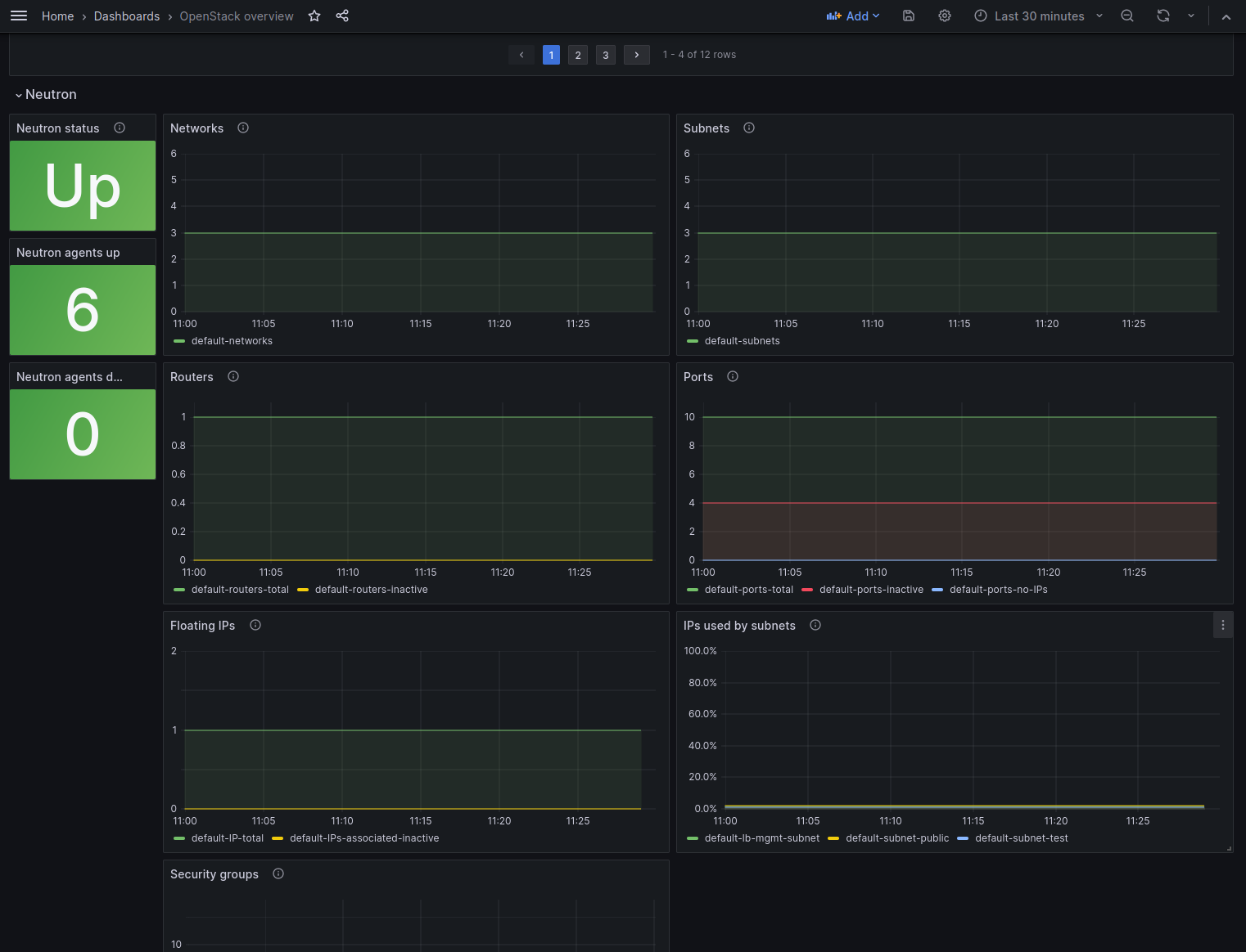 A dashboard designed to visualize metrics collected from an OpenStack cloud through the exporter found at https://github.com/openstack-exporter/openstack-exporter