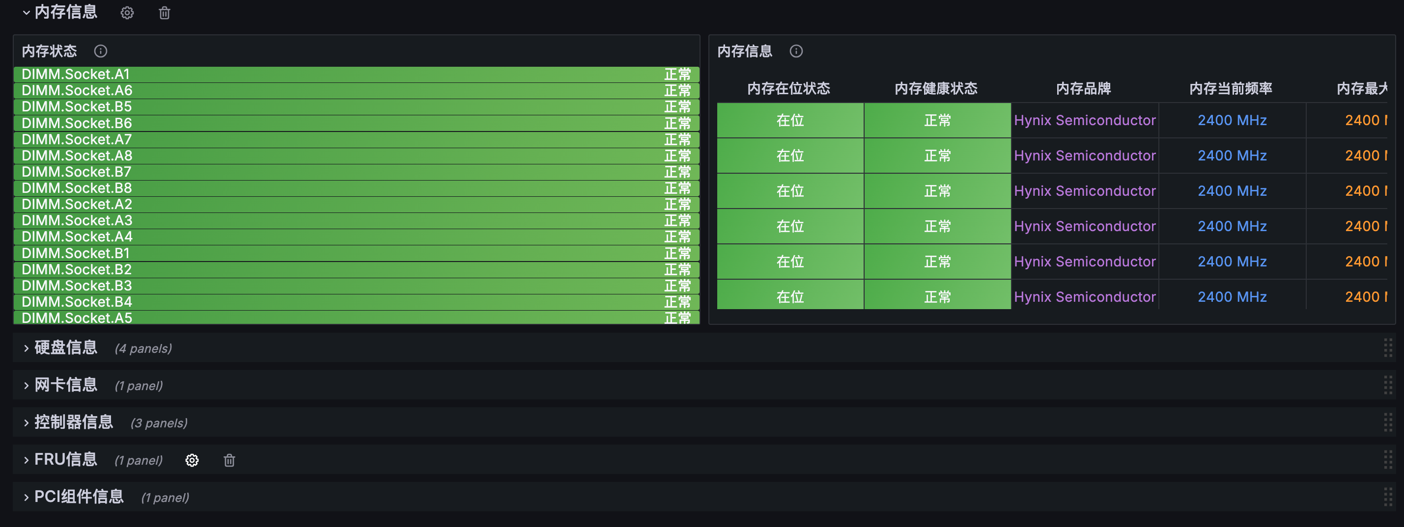 - 面板和单元格会根据实际状态信息改变对应状态颜色,以提示状态异常组件问题