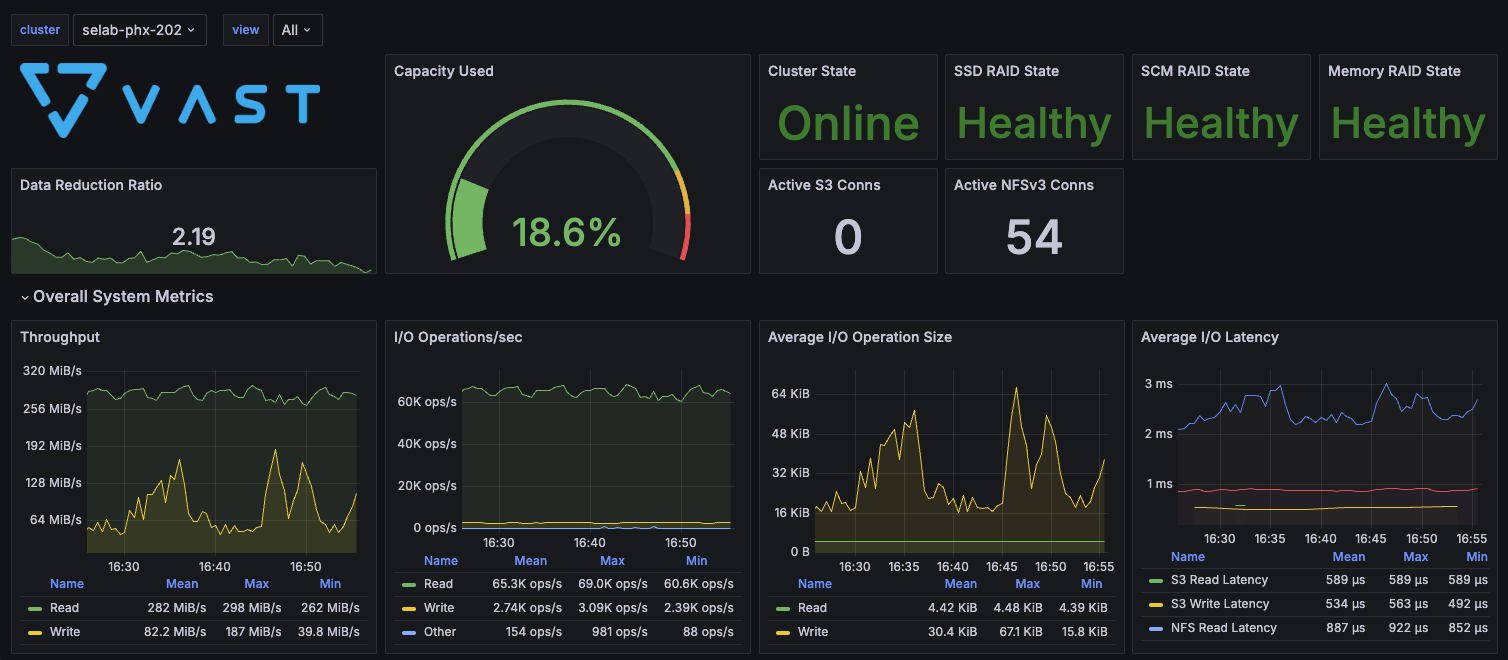 Dashboard for visualizing VAST 4.7 cluster metrics