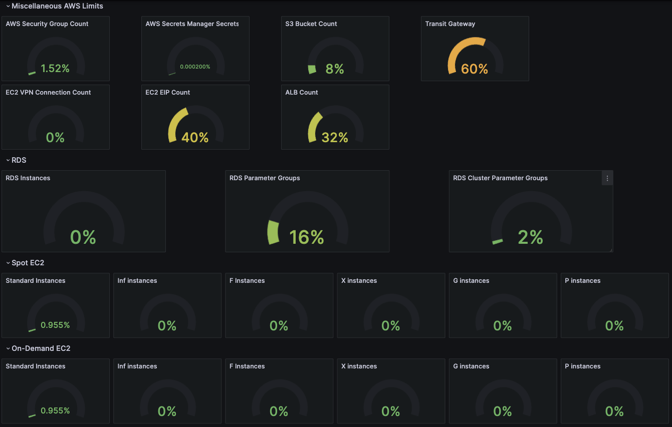 Note: I am not the creator of the aws-quota-checker... we just use the tool and have dashboards created from it :)