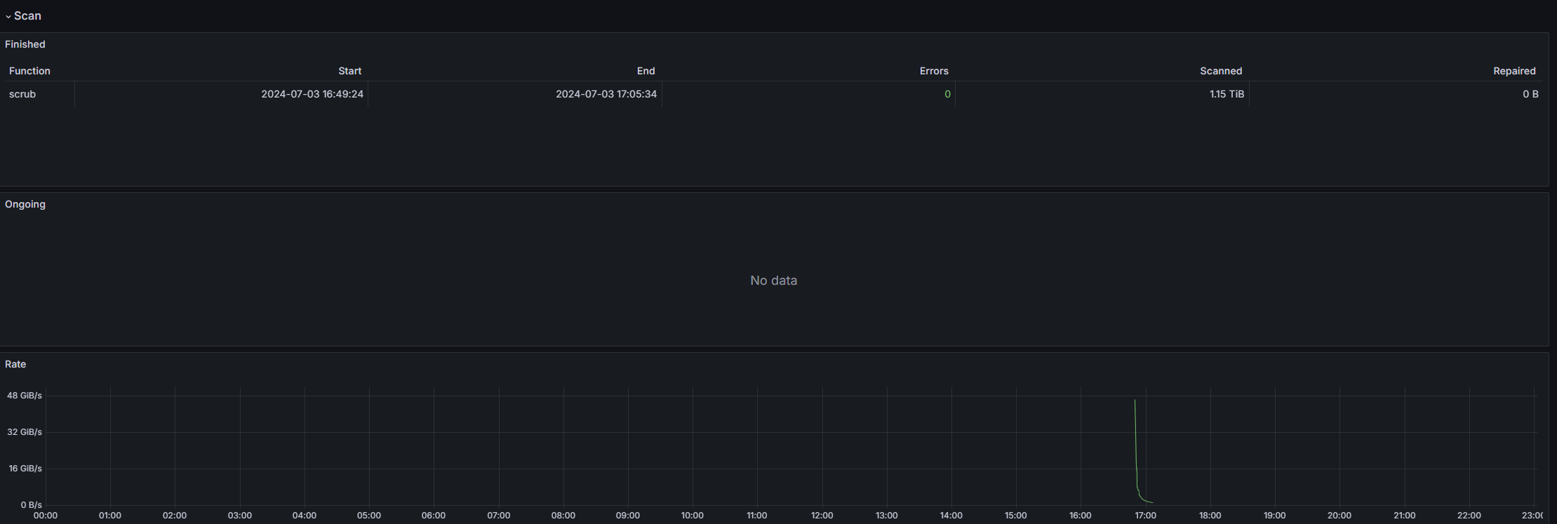 A ZFS dashboard with simple metrics including capacity, pool activity, IO size, latency and etc.