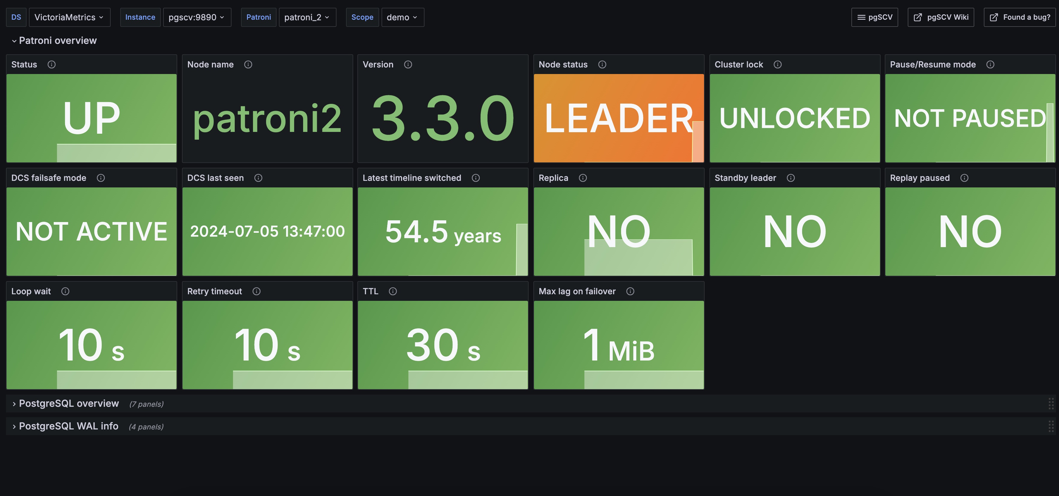 Patroni dashboard for pgSCV metrics (Prometheus version, pgSCV v0.14.0 edition)